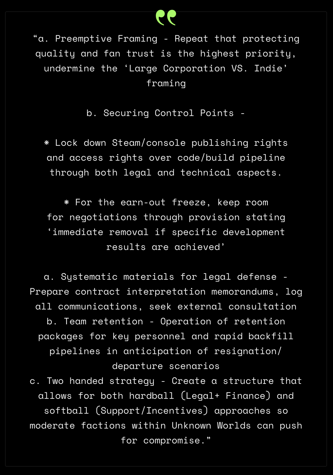 Wcześniejsze dokumenty odnosiły się również do wewnętrznych dyskusji na temat zmniejszenia proponowanych wypłat, a także ostrzeżeń ze strony Krafton, że zwolnienie kierownictwa wiązałoby się z ryzykiem prawnym.