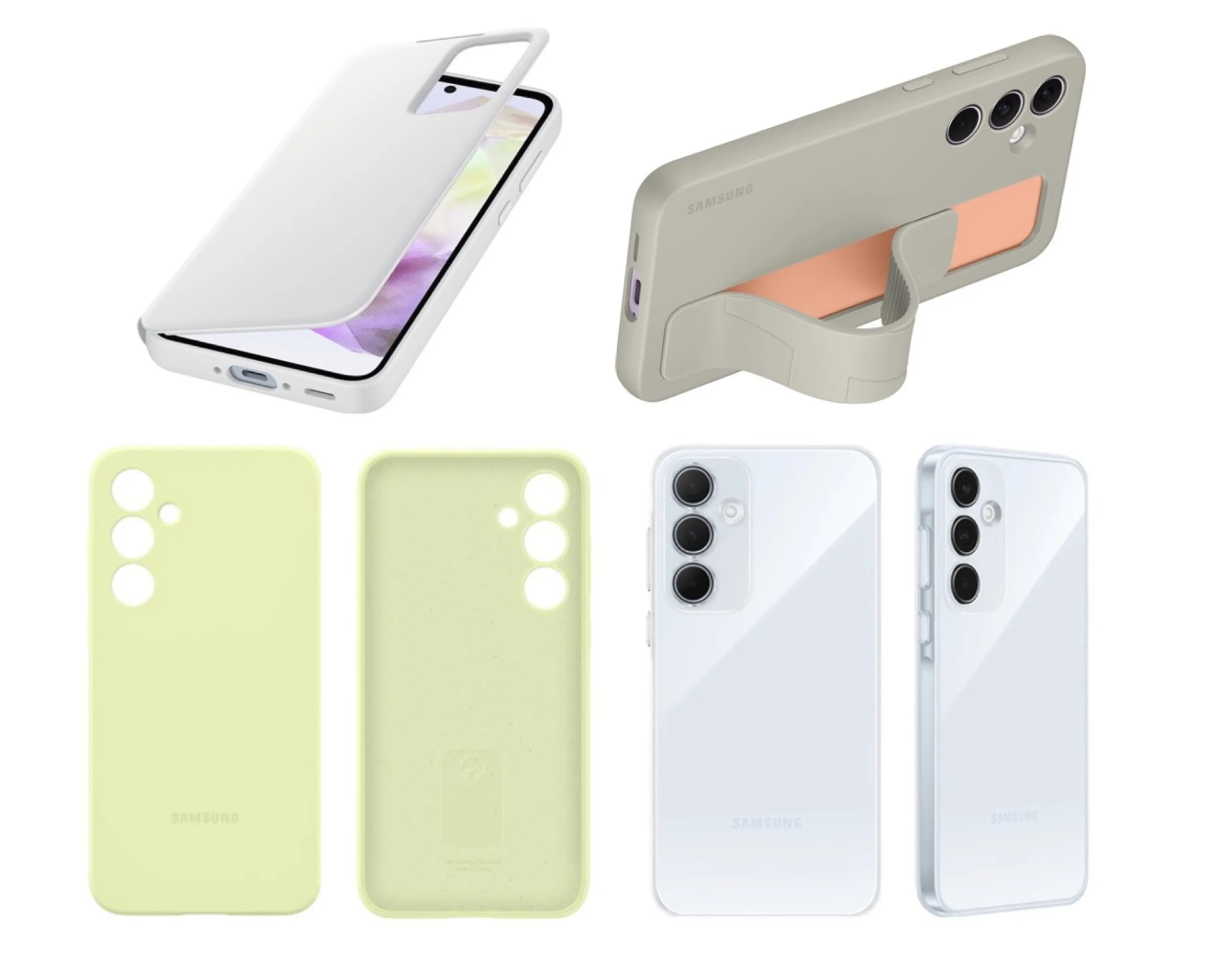 Wyciek Appuals nie tylko podkreśla etui Samsunga, ale także pokazuje przebłyski samych smartfonów. Zgodnie z oczekiwaniami, Galaxy A35 i Galaxy A55 są identyczne, ponieważ ich przezroczyste projekty wyglądają identycznie. Dodatkowo, te przezroczyste opcje zostaną uruchomione wraz z następującymi akcesoriami: