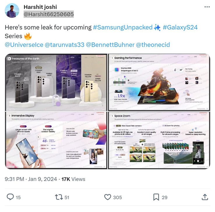 Slajdy szkoleniowe potwierdzają ważne funkcje Galaxy S24