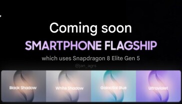 Nie możemy być pewni, czy jest to podróbka, ale niezawodny leaker Ice Universe skomentował wyciek i wskazał szczegół, który może wywołać dalszą dyskusję. Zgodnie z rzekomą promocją Samsunga (przetłumaczoną maszynowo poniżej po prawej), flagowy smartfon z Snapdragon 8 Elite Gen 5 będzie dostępny w czterech opcjach kolorystycznych: Black Shadow, White Shadow, Galactial (być może "Galatial" Blue) i Ultraviolet. Nieco rozjaśniony i przeskalowany przez SI render powyżej również nawiązuje do koloru Ultraviolet. Oryginał znajdą Państwo poniżej