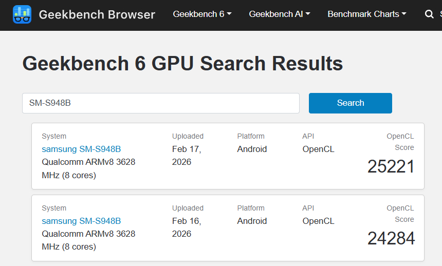 Wydajność jednordzeniowa jest na poziomie Honor Magic8 Pro, Xiaomi 17 Ultra a nawet skoncentrowanym na grach RedMagic 11 Propodobnie jak wydajność GPU w benchmarku OpenCL. Samsung zaprezentuje model Galaxy S26 Ultra 25 lutego wraz z tańszym modelem Galaxy S26 i Galaxy S26 Plus. Ostatnie przecieki wskazują, że Galaxy Buds 4 i Galaxy Buds 4 Pro również będą obecne.