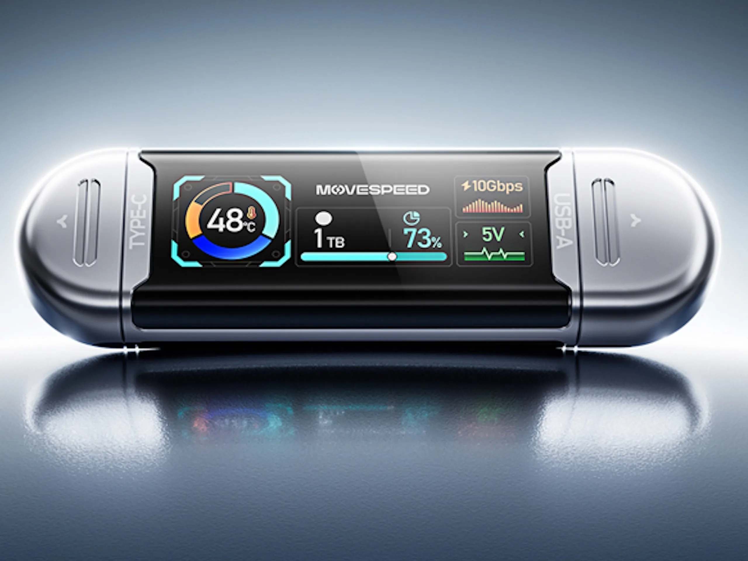 Dysk See U USB Drive firmy Movespeed, znany również jako SU10, jest dostępny z pięcioma poziomami pamięci: 128 GB, 256 GB, 512 GB, 1 TB i 2 TB. Każda wersja posiada porty USB-C i USB-A 3.2 Gen 2.1 z ochronnymi zaślepkami i centralnym wyświetlaczem. Na 1,65-calowym (~42 mm) ekranie TFT użytkownicy mogą przeglądać różne punkty danych, w tym aktualną temperaturę, pojemność i szybkość transferu danych. Według strony kampanii, wyświetlacz ma średnią jasność 350 nitów i kąt widzenia 170°.