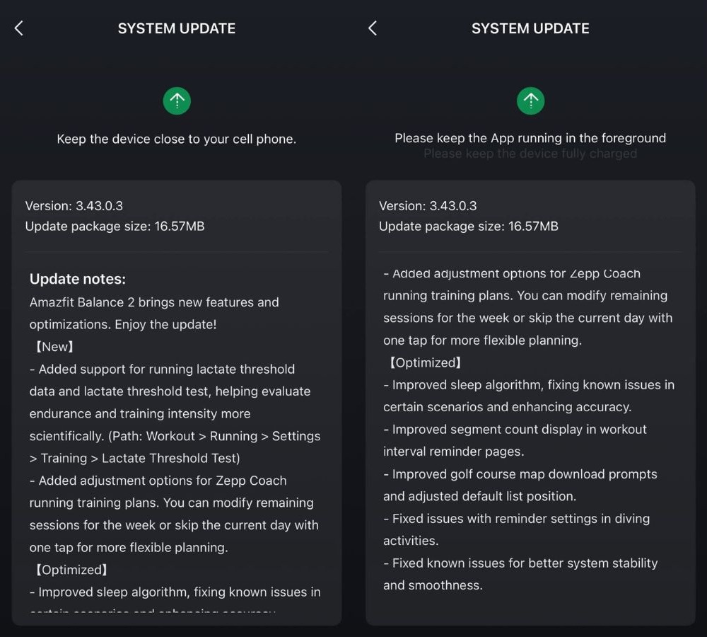 Zazwyczaj aktualizacje wprowadzane są etapami dla użytkowników smartwatcha Amazfit Balance 2(obecnie 249,99 USD w Amazon). Prawdopodobnie rozpoczęły się one w krajach takich jak Stany Zjednoczone, Kanada i Chiny, a w najbliższych dniach spodziewane jest wdrożenie w Europie. Gdy będą dostępne w Państwa regionie, będą Państwo mogli pobrać oprogramowanie układowe za pośrednictwem aplikacji Zepp.