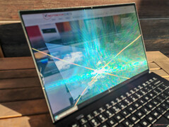 Acer zastosował 14,5-calowy ekran dotykowy OLED (2880 x 1800 pikseli, 16:10) o częstotliwości odświeżania 120 Hz firmy Samsung. Podstawowe zalety OLED (żywe kolory, wysoki kontrast, krótki czas reakcji) są obecne, ale warstwa ekranu dotykowego powoduje wyraźnie widoczny efekt rastra, który znacznie pogarsza subiektywną jakość obrazu, szczególnie w przypadku jasnych treści. Próbowaliśmy uchwycić to na zdjęciu po prawej, ale kamera minimalnie zaostrza problem. Występuje również migotanie PWM przy 240 Hz na każdym poziomie jasności. Zarówno jasność, jak i temperatura barwowa mogą być kontrolowane przez czujnik. Ekran dotykowy jest bardzo odblaskowy, co ogranicza jego zastosowanie, szczególnie na zewnątrz.