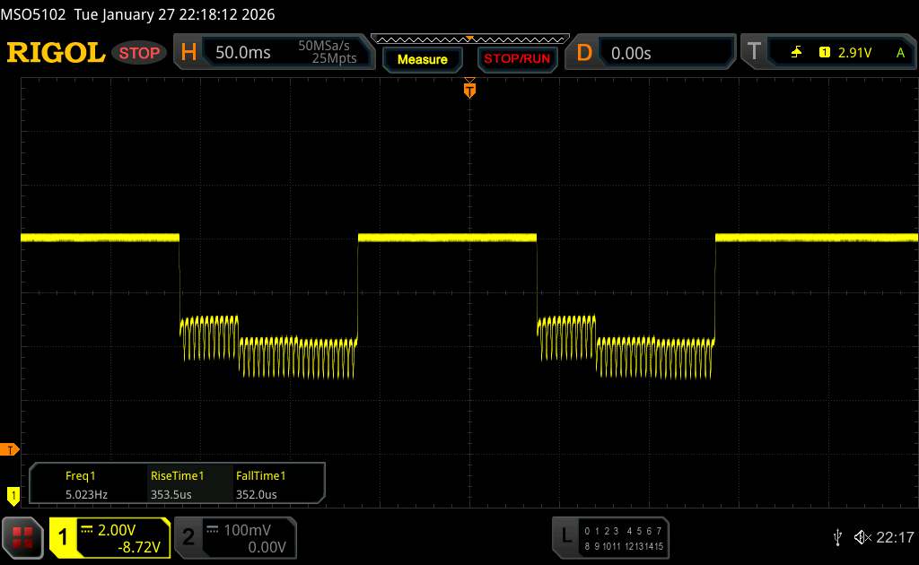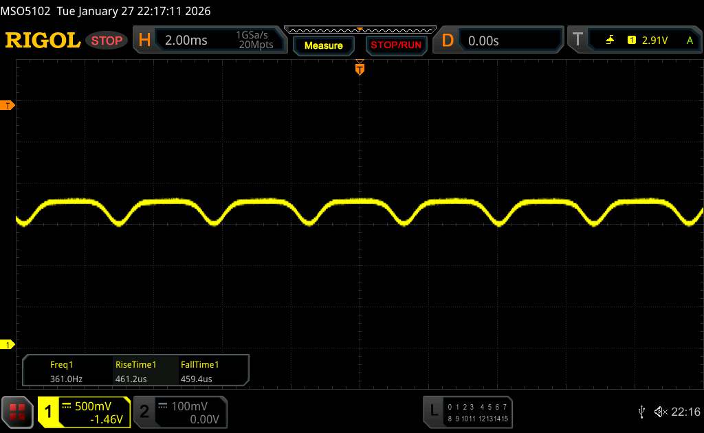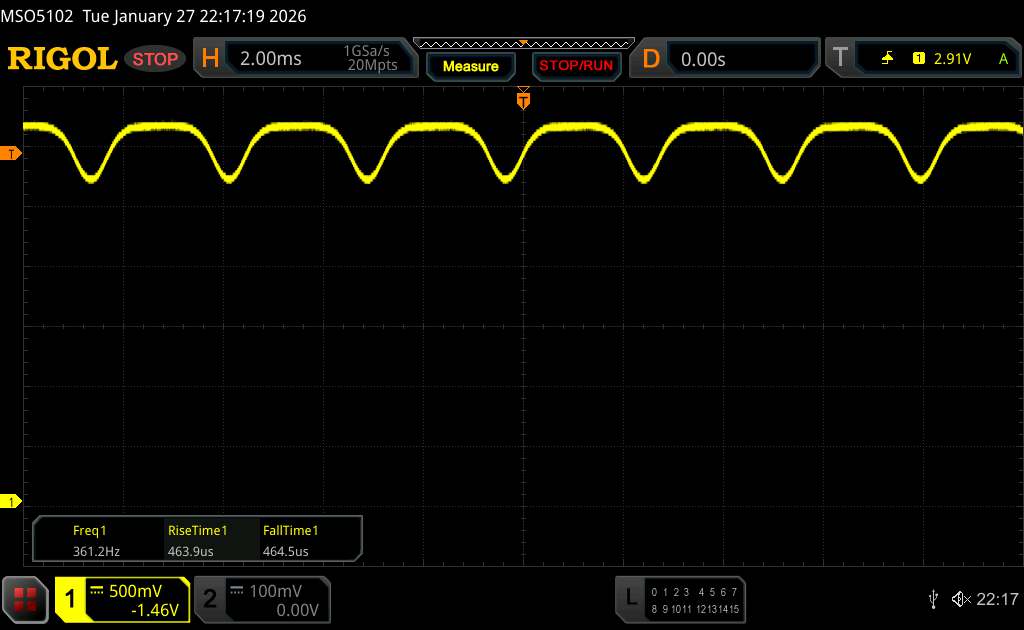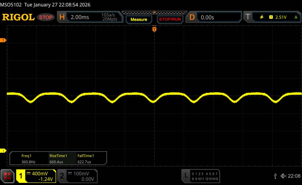 Korzystając z oscyloskopu, zmierzyliśmy częstotliwość bazową wynoszącą 360 Hz. Zastosowano jednak również przyciemnianie PWM o wysokiej częstotliwości przekraczającej 1500 Hz, więc wszelkie skutki zdrowotne dla wrażliwych użytkowników powinny pozostać ograniczone.