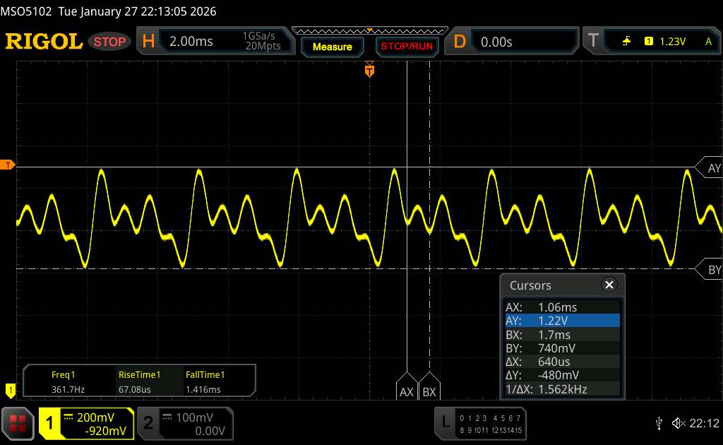 (+) | wzloty są liniowe (6.7% delta do poprzedniej częstotliwości)