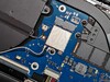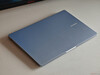 Samsung zastosował smukłą metalową obudowę dla Galaxy Book4 Edge, która ma 1,5 cm grubości i waży 1,49 kg, dzięki czemu z łatwością zmieści się w każdym plecaku. Kolor obudowy to Sapphire Blue, czyli bardzo jasny odcień niebieskiego (raczej srebrny z lekkim niebieskim odcieniem). Wizualnie notebook prezentuje się świetnie, a jakość wykonania również jest dobra. Jedynie zawias wyświetlacza (maksymalny kąt otwarcia 180 stopni) jest trochę zbyt gładki i przez to trochę się chwieje. Dolną pokrywę obudowy można zdjąć (śrubki pod gumowymi nóżkami), ale możliwości konserwacji ograniczają się do wyczyszczenia wentylatora, modułu WLAN i akumulatora, który w razie potrzeby można wymienić.