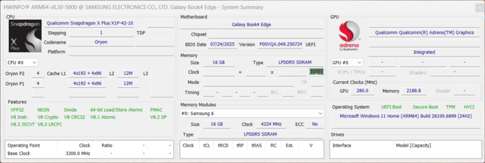 Samsung Galaxy Book4 Edge 15 Qualcomm Snapdragon X Plus X1P-42-100 ⎘ Qualcomm SD X Adreno X1-45 1.7 TFLOPS ⎘ 16 GB Pamięć, 256 GB | Amazon: 1. $684.90 SAMSUNG 15” Galaxy AI Book... 2. $629.00 SAMSUNG Galaxy Book4 Edge La... 3. $969.99 Samsung Galaxy Book4 AI Busi... Cena katalogowa: 749€ | 1.5 kg | 15 mm | 15.60" 1920x1080 141 PPI IPS | |
