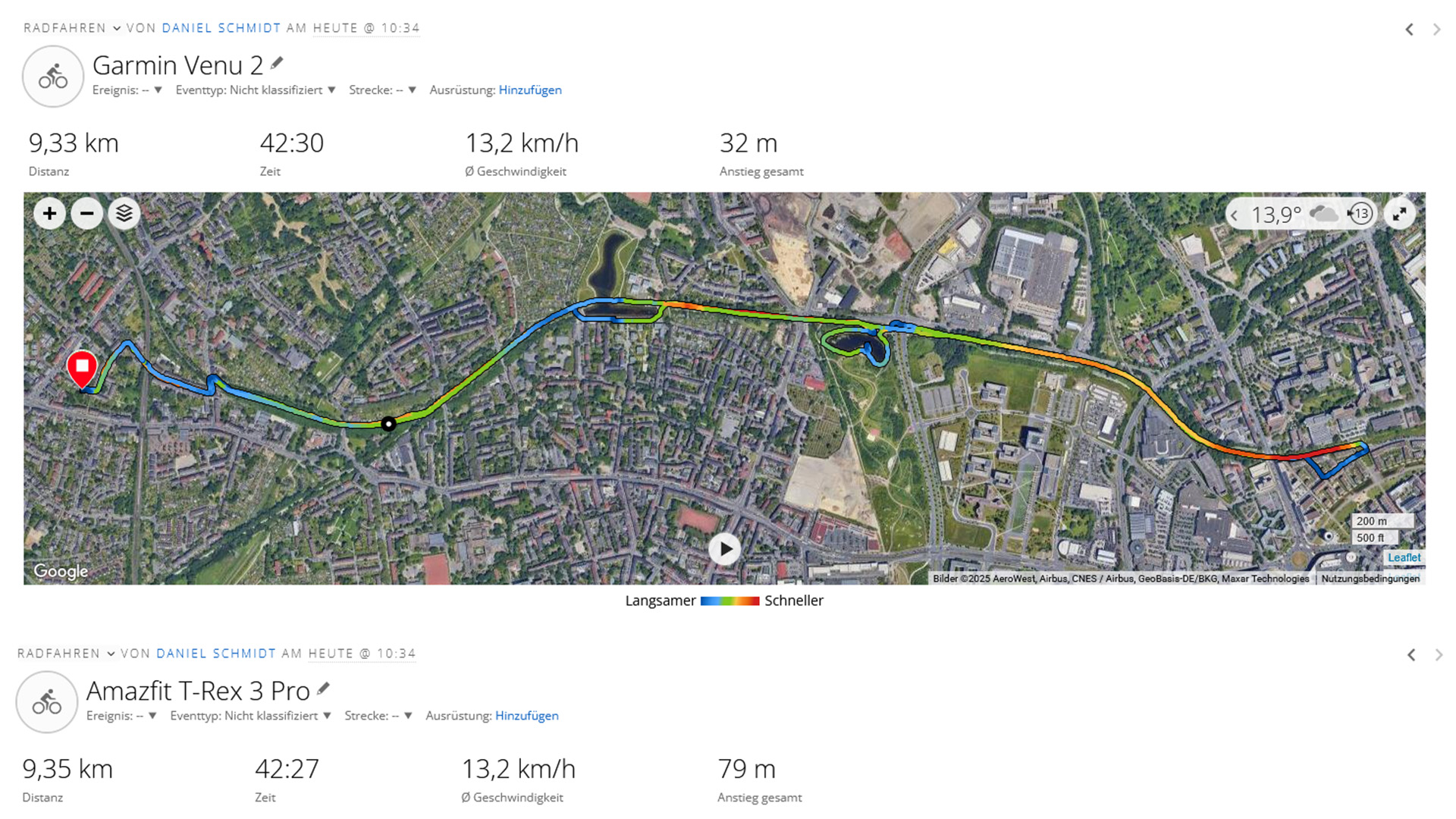 T-Rex 3 Pro oferuje pozycjonowanie za pomocą sześciu systemów satelitarnych, takich jak GPS. W teście połączenie zostało nawiązane bez długiego czasu oczekiwania. Określona dokładność jest wysoka, również w odniesieniu do Garmin Venu 2 jako punktu odniesienia. Wystąpiły tylko duże odchylenia przy określaniu metrów wysokości pokonanych podczas wycieczki rowerowej.