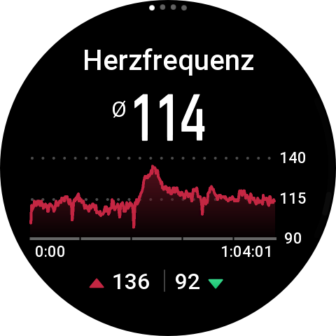 Jeśli chodzi o tętno, smartwatch konkuruje z paskiem na klatkę piersiową Polar H120, z którego pomiarami w dużej mierze pasuje jako wartości referencyjne. Wyniki dla tętna spoczynkowego były całkowicie spójne. Większe rozbieżności wystąpiły w przypadku średniego tętna. Pomiary tutaj były do 10 uderzeń poniżej wartości referencyjnej. Prowadzi to do ogólnego odchylenia wynoszącego 2,6%, co znajduje również odzwierciedlenie w krzywej dynamicznej.