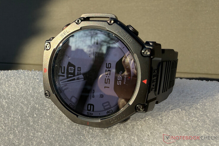 Według producenta, chroniony szafirowym szkłem wyświetlacz osiąga szczytową jasność 3000 nitów. To o 50 procent więcej niż jasność 2000 nitów w modelu T-Rex 3. Chociaż zmierzyliśmy tylko wartość 2650 nitów w środku, to nadal korzystnie wpływa to na czytelność w bardzo jasnym otoczeniu, na przykład w bezpośrednim świetle słonecznym.
