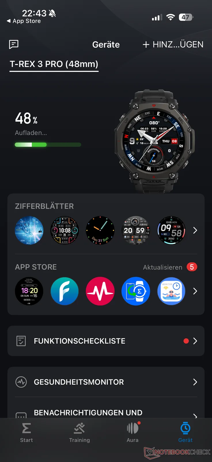 Nie było na co narzekać podczas konfigurowania Amazfit T-Rex 3 Pro podczas testu. Aby nawiązać połączenie ze smartfonem, należy skorzystać z aplikacji Zepp dla Android lub iOS jest wymagana. Po bezpłatnej rejestracji lub zalogowaniu się na istniejące konto, urządzenie można podłączyć w zaledwie kilku krokach.