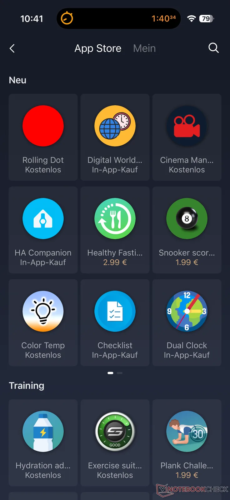Różne ustawienia związane z monitorowaniem zdrowia, powiadomieniami i ustawieniami urządzenia można wprowadzić za pośrednictwem aplikacji Zepp. Oprócz dużego wyboru darmowych i płatnych tarcz zegarka, posiada ona również własny sklep z aplikacjami. Za jego pomocą można zainstalować dodatkowe (czasami płatne) aplikacje na smartwatchu, aby rozszerzyć go o dodatkowe funkcje.