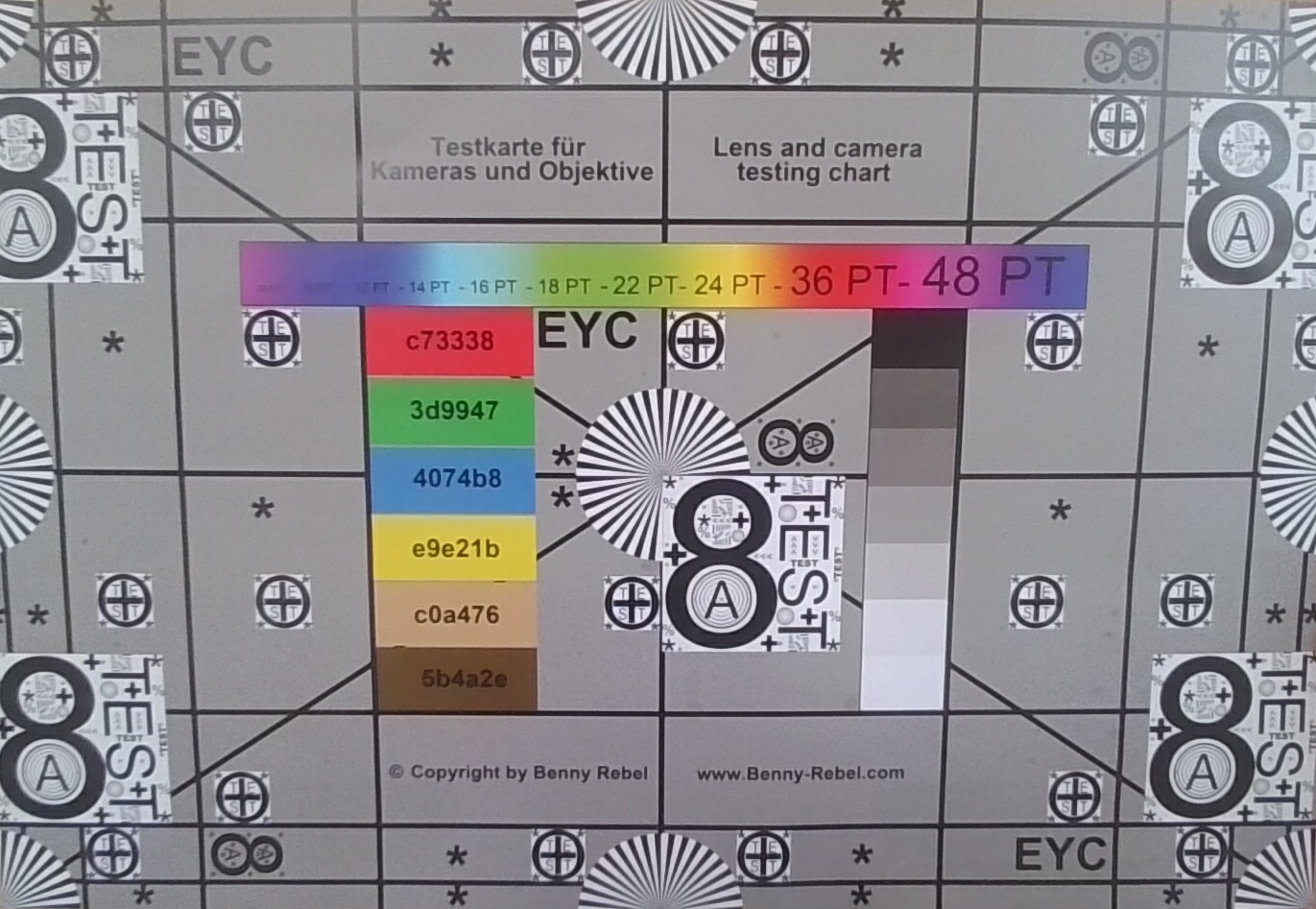 | Colorchecker dE 2000 max. * | 3.49 | 5.1 -46% | 7.24 -107% | 5.25 -50% | 2.82 19% |