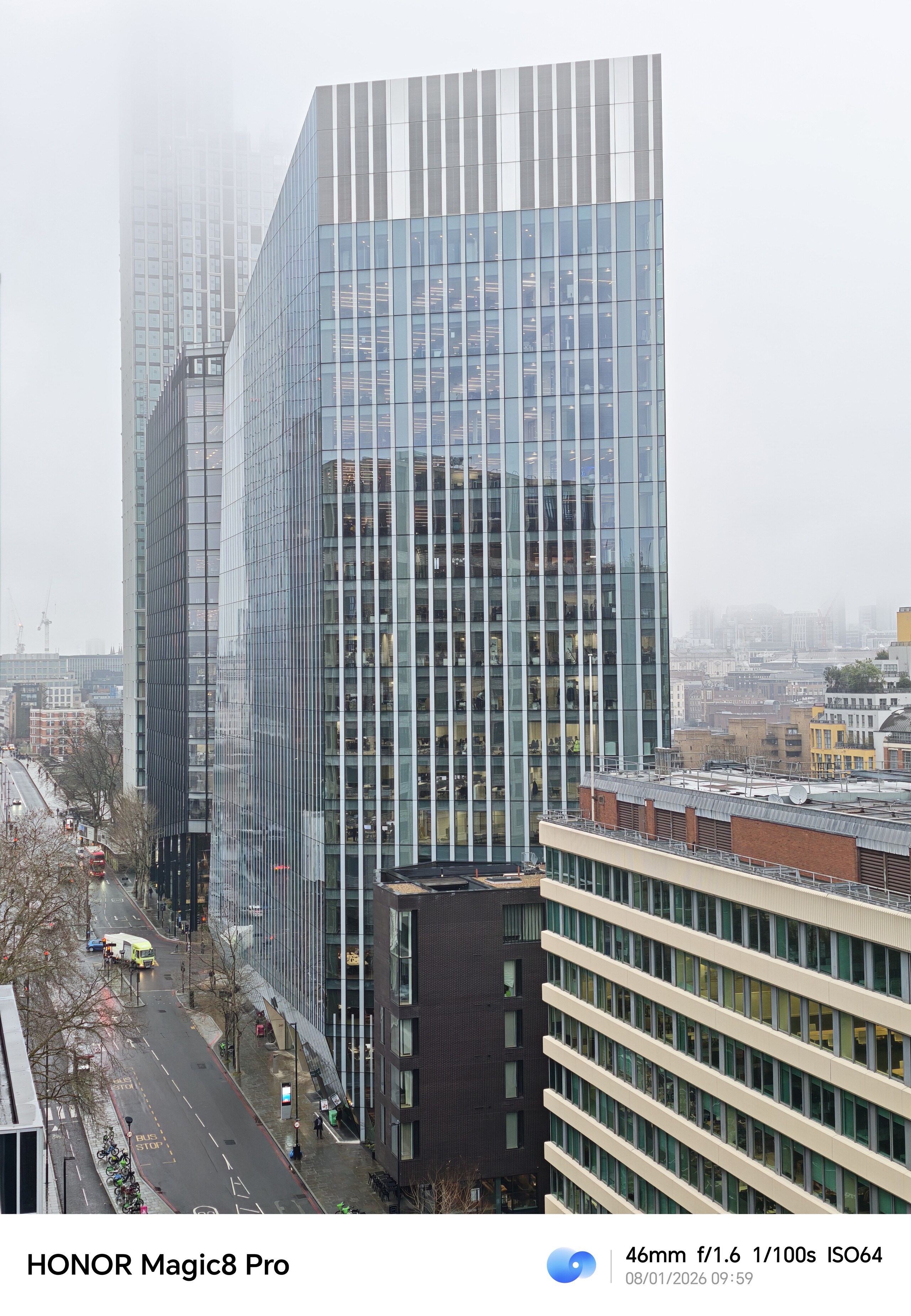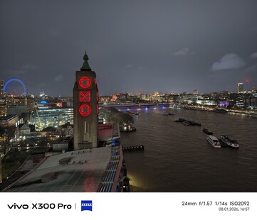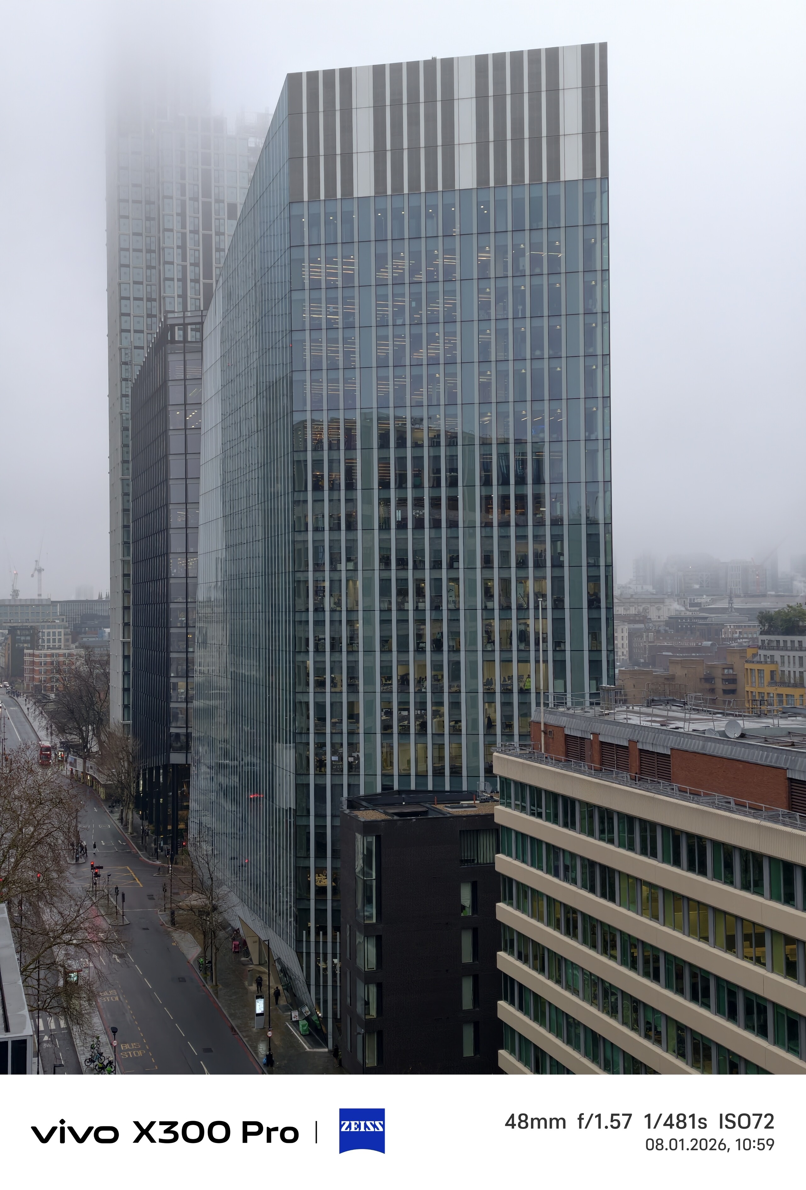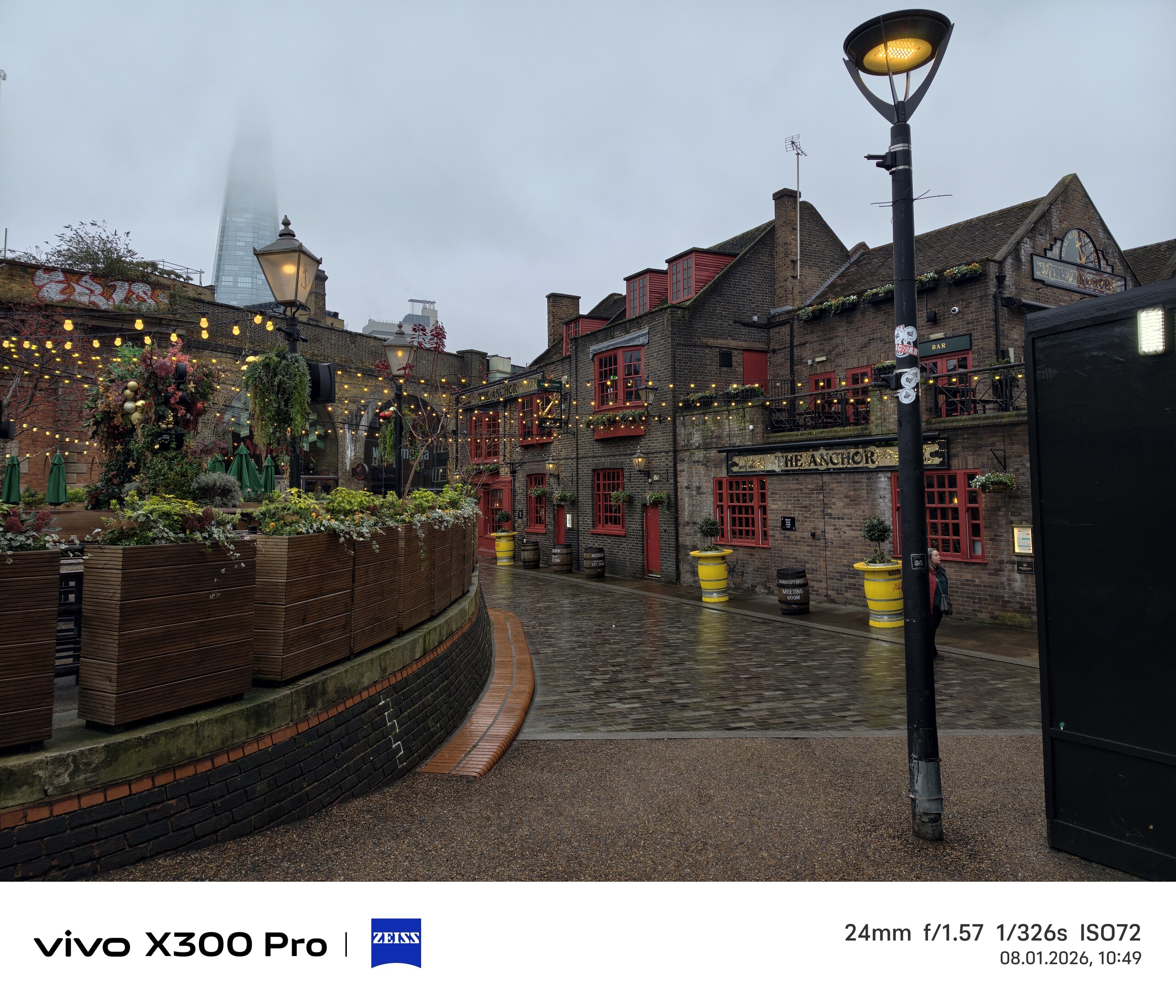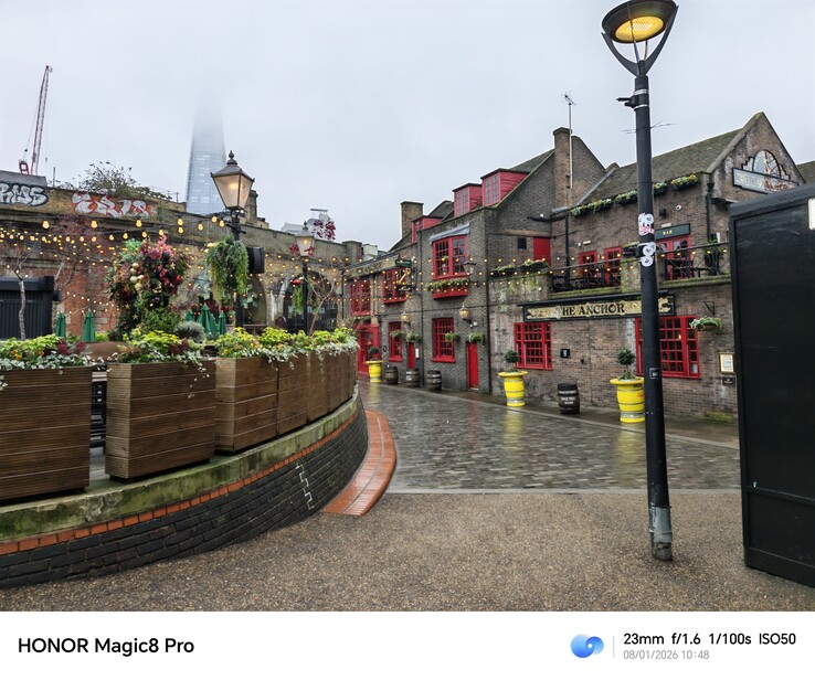 Pogoda w Londynie była pochmurna, co X300 Pro rejestruje nieco lepiej, ponieważ obrazy nie są generalnie tak rozjaśnione. Wolelibyśmy jednak, aby był on nieco jaśniejszy. Honor przyjmuje odwrotne podejście i znacznie rozjaśnia obraz, aby zasugerować większy zakres dynamiki. W tym przypadku wolelibyśmy nieco ciemniejsze ujęcie. Niestety, kompensację ekspozycji można regulować tylko w trybie Pro na obu smartfonach, a nawet to nie jest trwale zapisywane.
