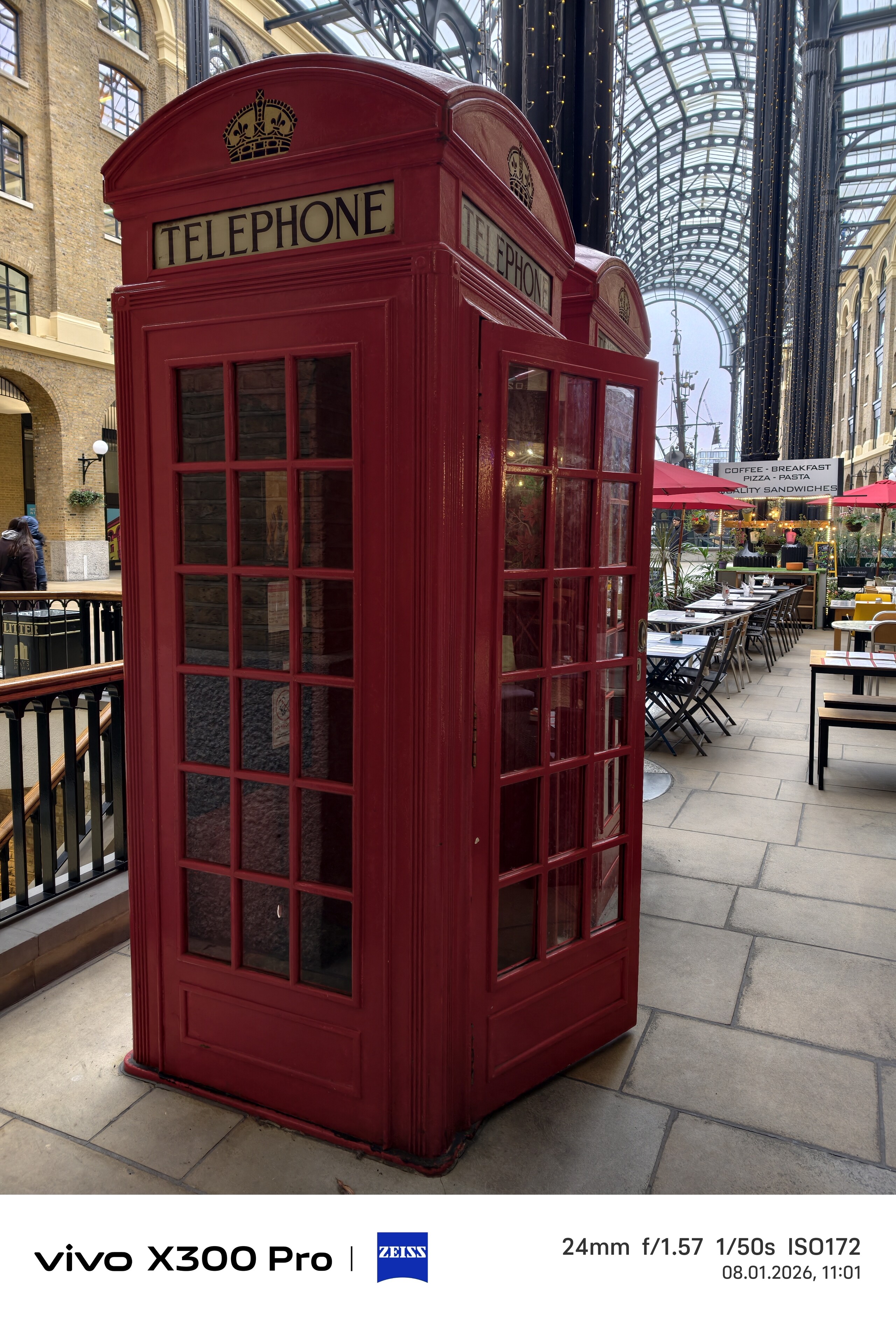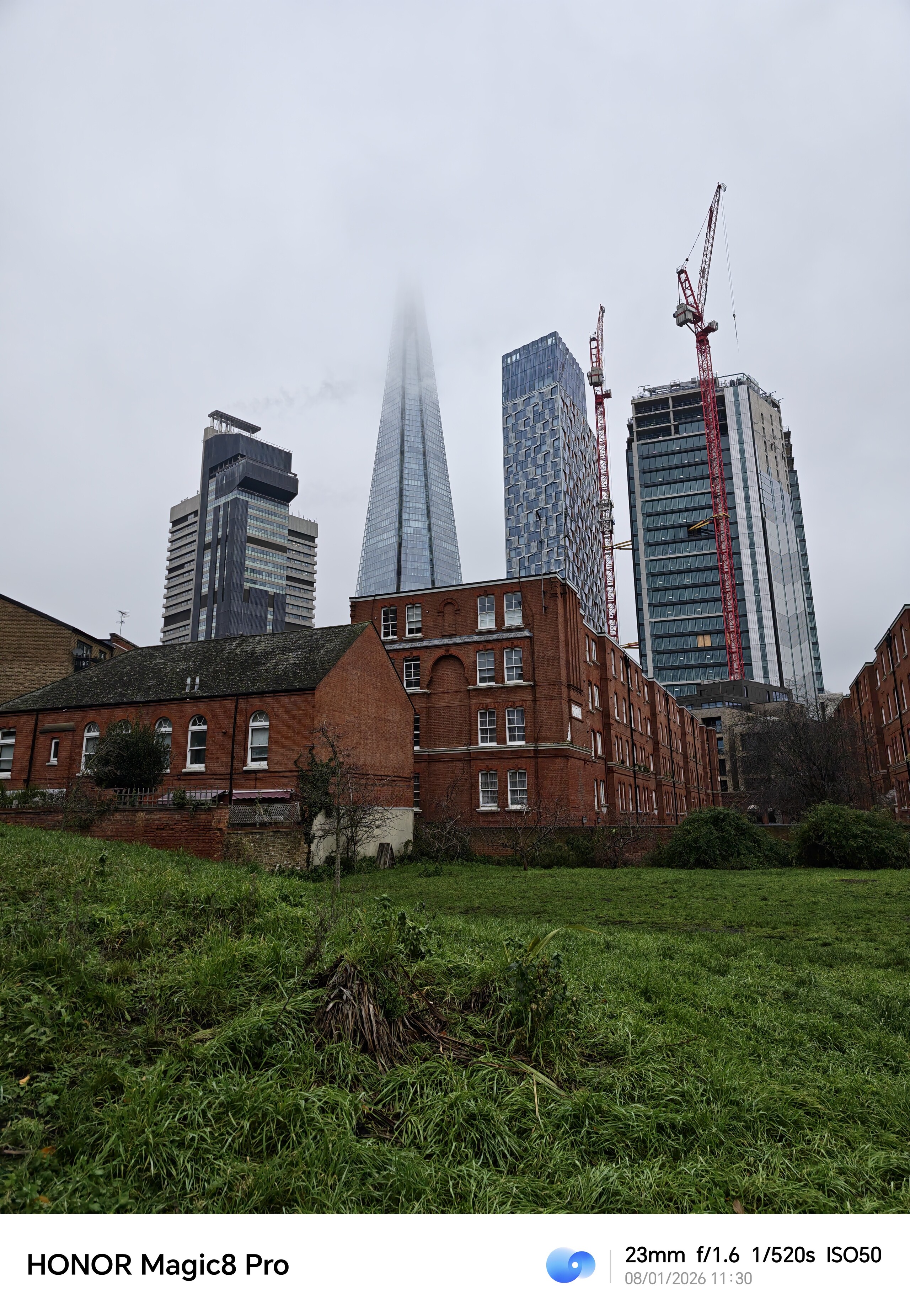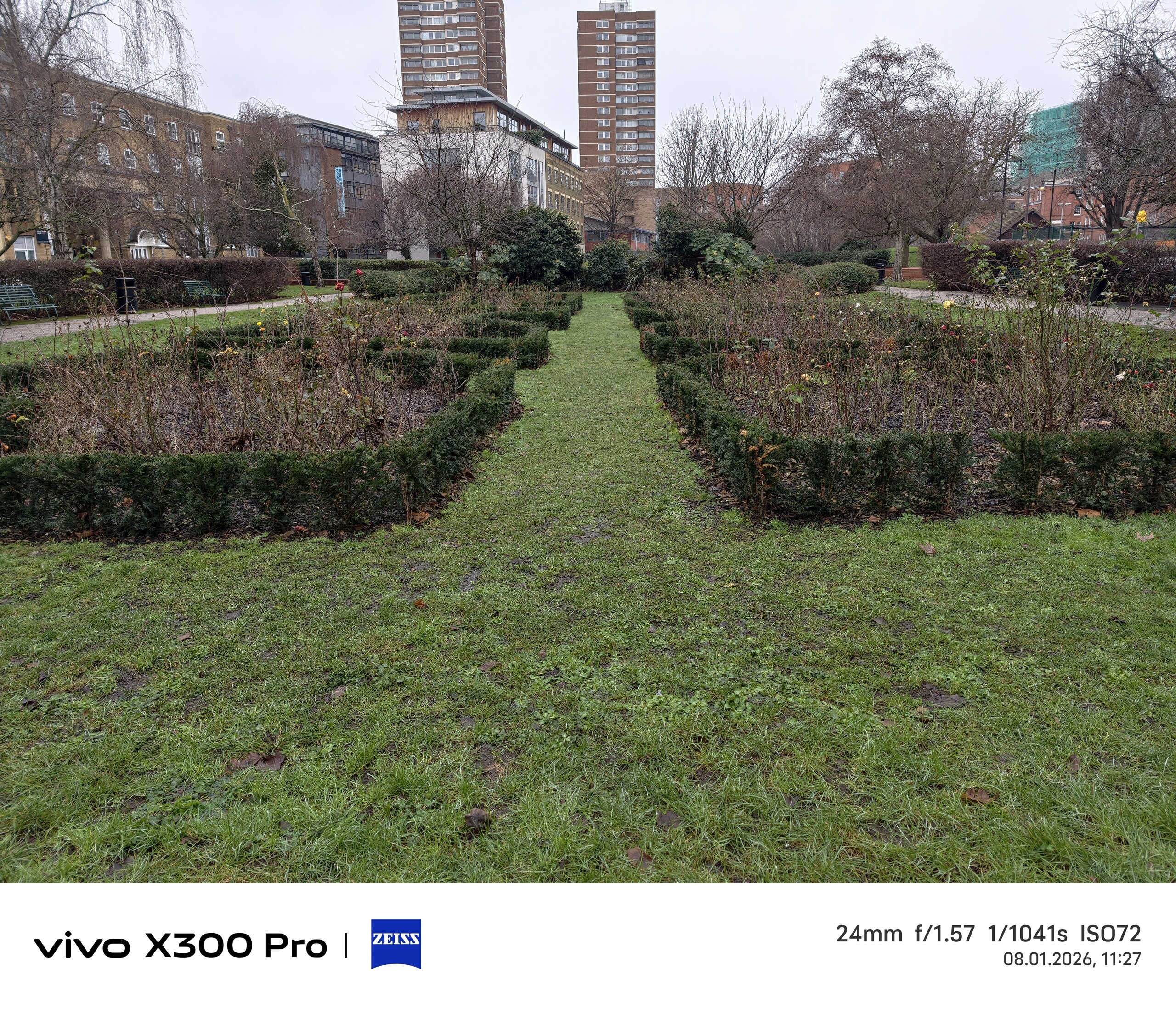 Pogoda w Londynie była pochmurna, co X300 Pro rejestruje nieco lepiej, ponieważ obrazy nie są generalnie tak rozjaśnione. Wolelibyśmy jednak, aby był on nieco jaśniejszy. Honor przyjmuje odwrotne podejście i znacznie rozjaśnia obraz, aby zasugerować większy zakres dynamiki. W tym przypadku wolelibyśmy nieco ciemniejsze ujęcie. Niestety, kompensację ekspozycji można regulować tylko w trybie Pro na obu smartfonach, a nawet to nie jest trwale zapisywane.
