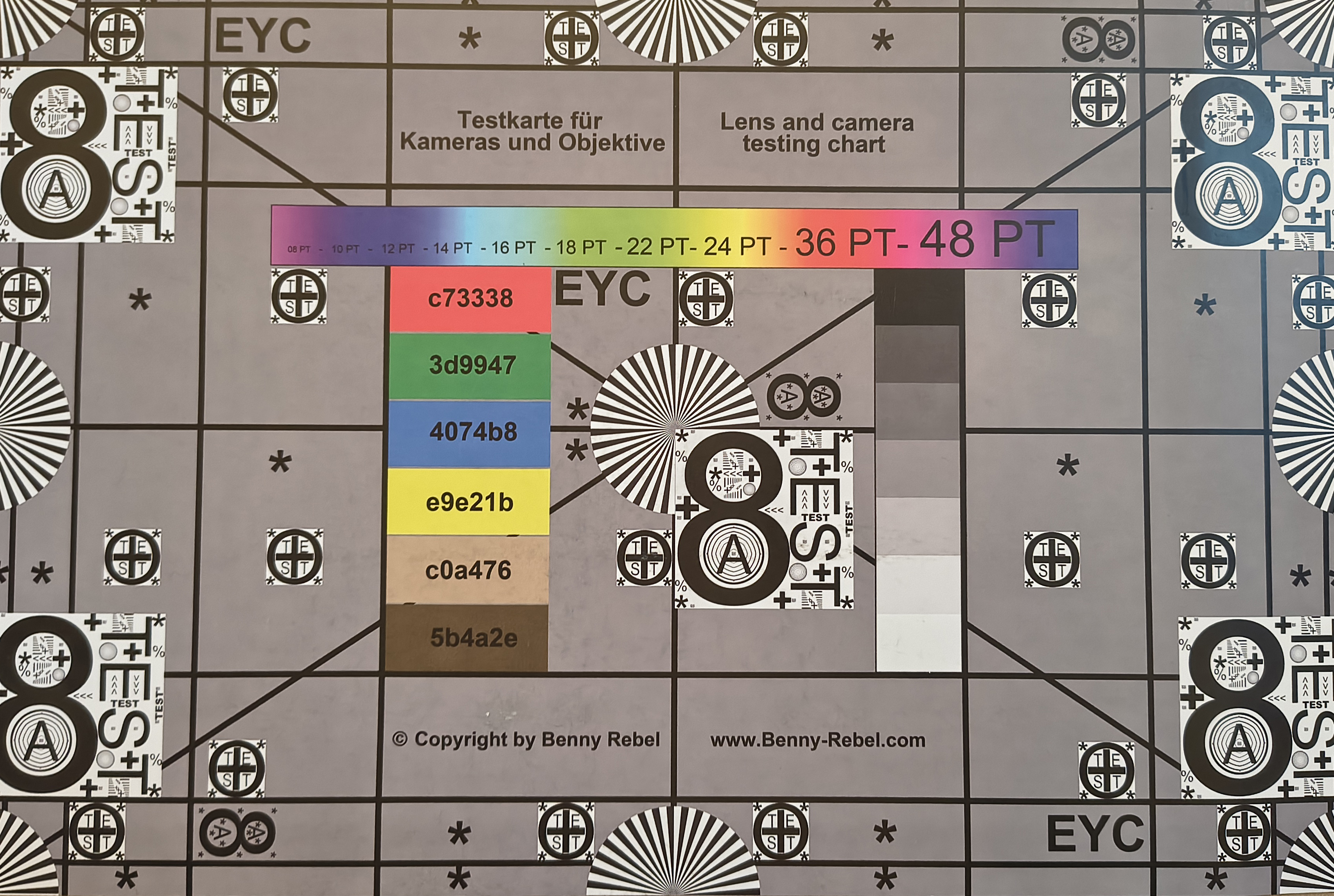 | Colorchecker dE 2000 max. * | 3.28 | 2.7 18% | 2.8 15% | 2.8 15% | 3.81 -16% |