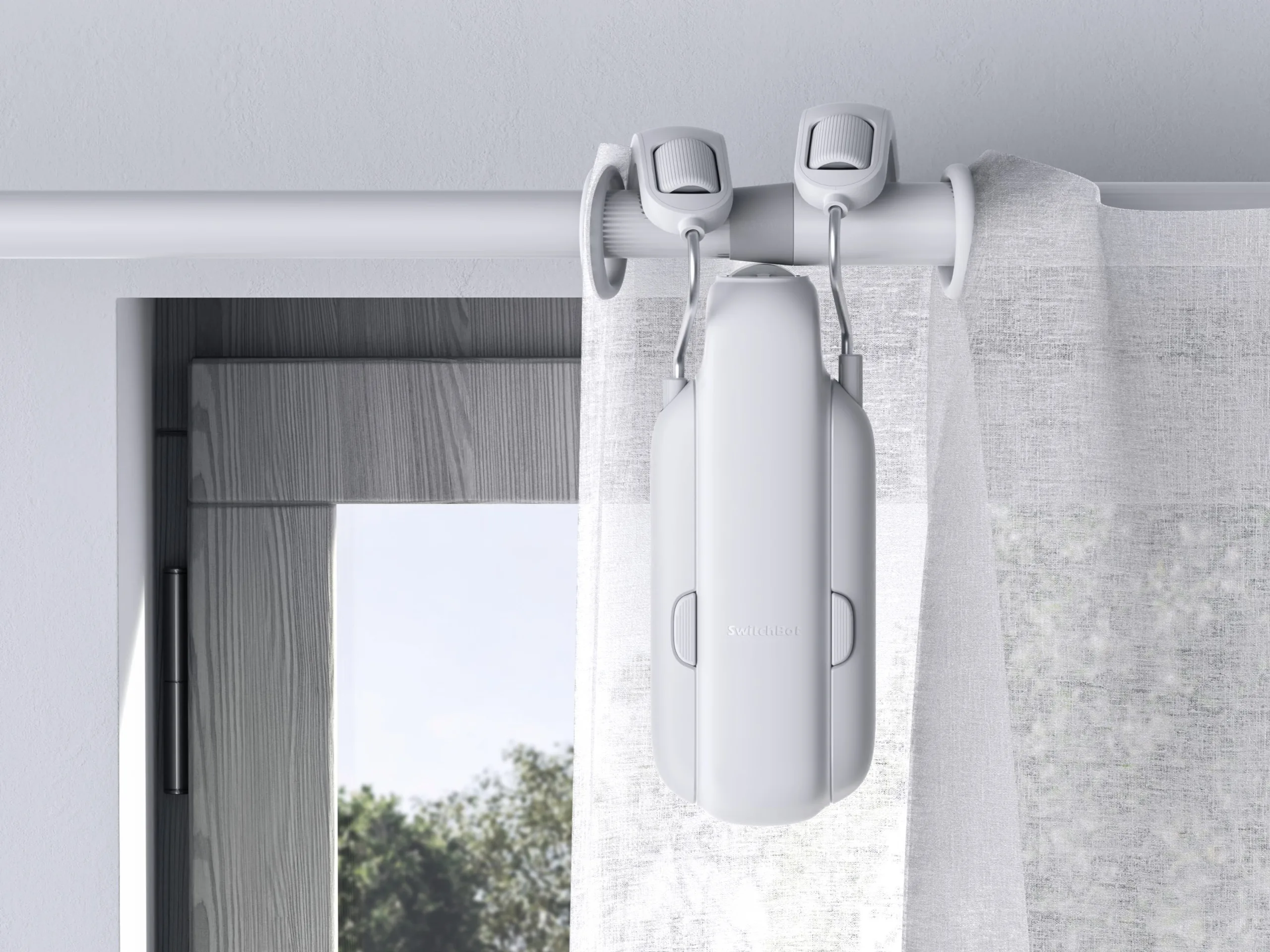 SwitchBot Curtain 3 sprawia, że istniejące zasłony stają się inteligentne. Gadżet eliminuje potrzebę stosowania zmotoryzowanego karnisza. Zamiast tego urządzenie mocuje się do obecnego drążka, ukrytego za zasłoną, popychając tkaninę. Urządzenie jest kompatybilne z zasłonami zawieszonymi na drążkach, szynach U i szynach I.