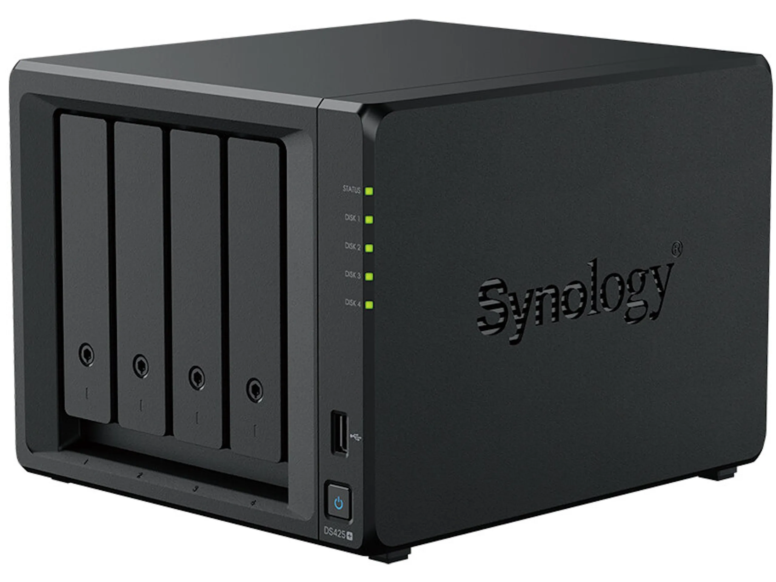 Już nazwa produktu wskazuje, że nowy NAS Synology obsługuje cztery 2,5-calowe lub 3,5-calowe dyski twarde. Jak zwykle, obsługiwane są różne konfiguracje RAID, pozwalające na optymalizację szybkości, pojemności lub ochrony danych. Należy jednak pamiętać, że NAS nigdy nie powinien być jedynym rozwiązaniem zabezpieczającym dane.