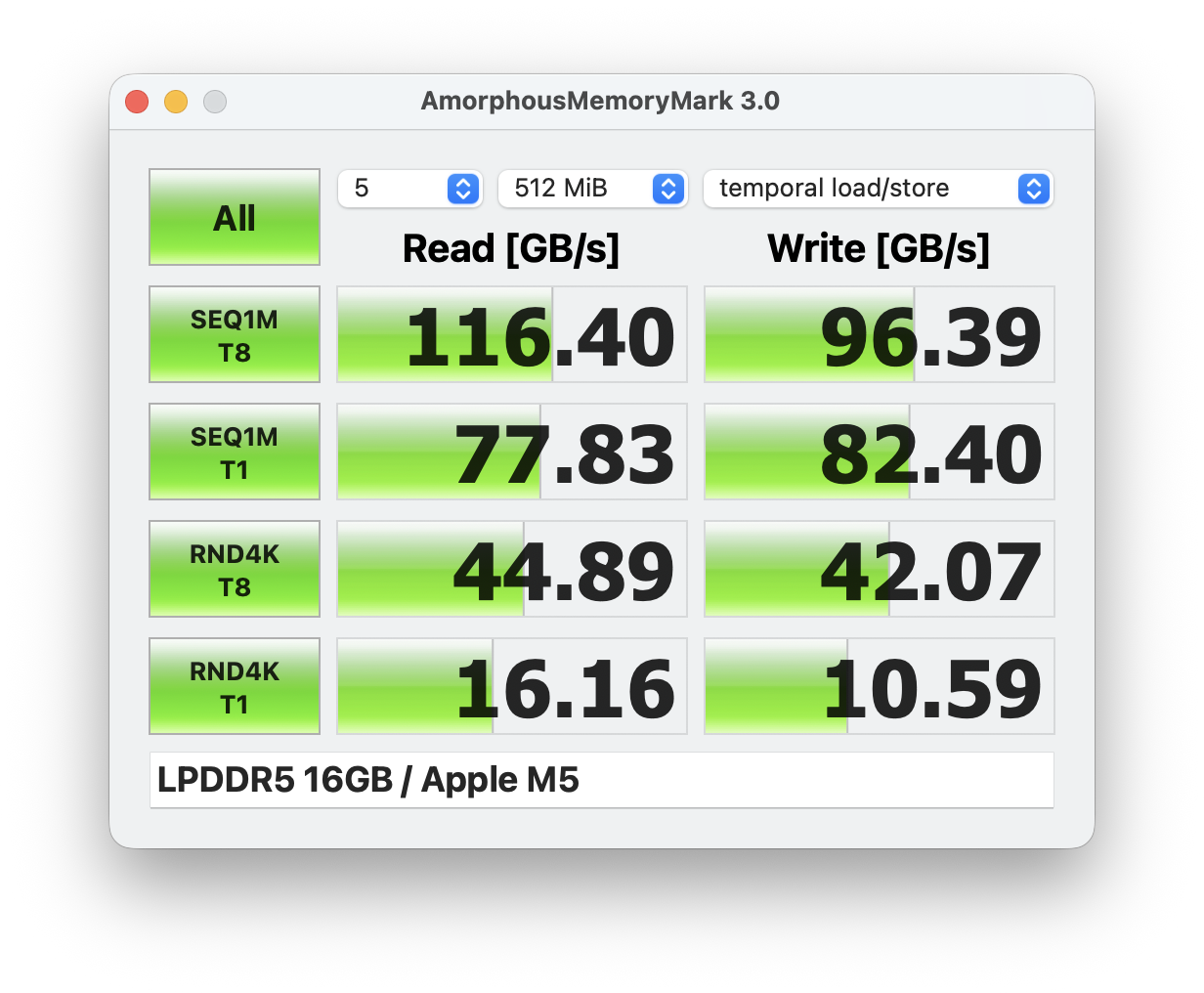 | Przeciętny Apple M5 10-Core (957 - 1172, n=2) | |