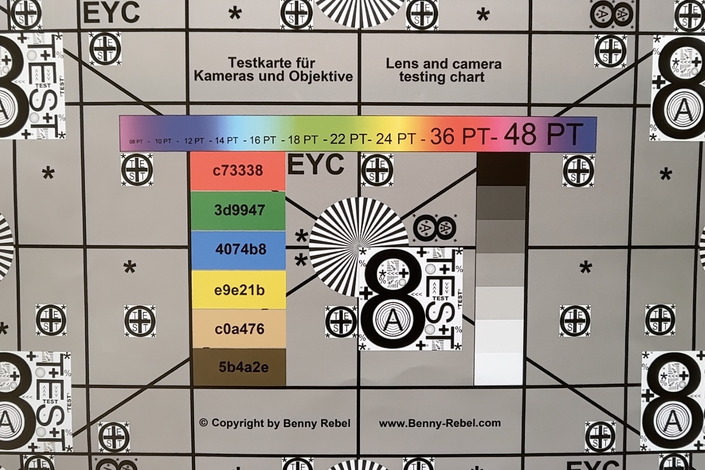 | Colorchecker dE 2000 max. * | 4 | 2.8 30% | 6.66 -67% | 3.45 14% | 2.1 47% |