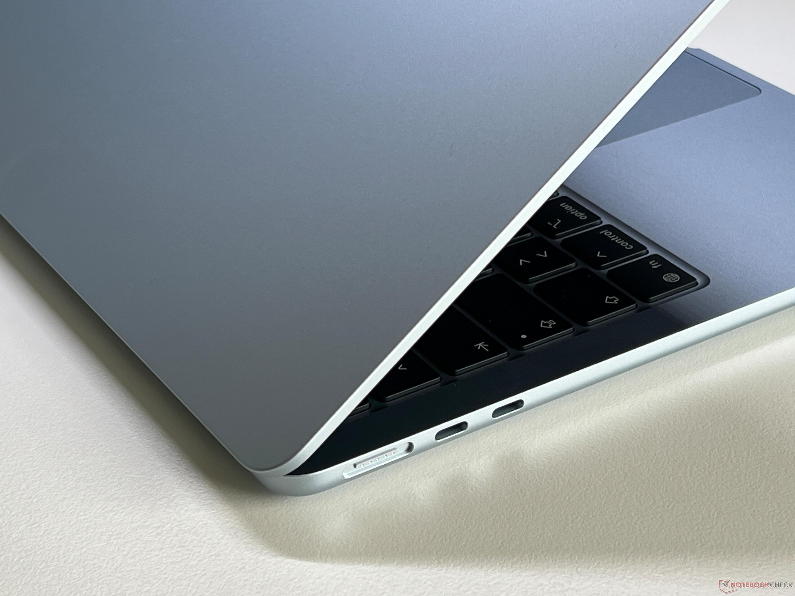 Konstrukcja obudowy, w tym urządzenia wejściowe, jest identyczna z poprzedni model i nadal otrzymują Państwo bardzo smukłe aluminiowe unibody, mimo że Air pozostaje nieco cięższy niż niektórzy z jego rywali, ważąc 1,xx kg. Łączność jest nadal dość ograniczona dzięki MagSafe, 3,5 mm audio, a także dwóm portom USB-C z Thunderbolt 4. Apple naprawił jednak naszą krytykę Wi-Fi i Air obsługuje teraz najnowsze Wi-Fi 7, w tym Bluetooth 6.0 za pośrednictwem własnego układu N1 Apple. Wydajność w naszym standardowym teście Wi-Fi nie była jednak idealnie spójna, a wyniki mogłyby być lepsze, ale wpływ na codzienne użytkowanie jest znikomy. Poniższe zdjęcia pochodzą z poprzedniego modelu.