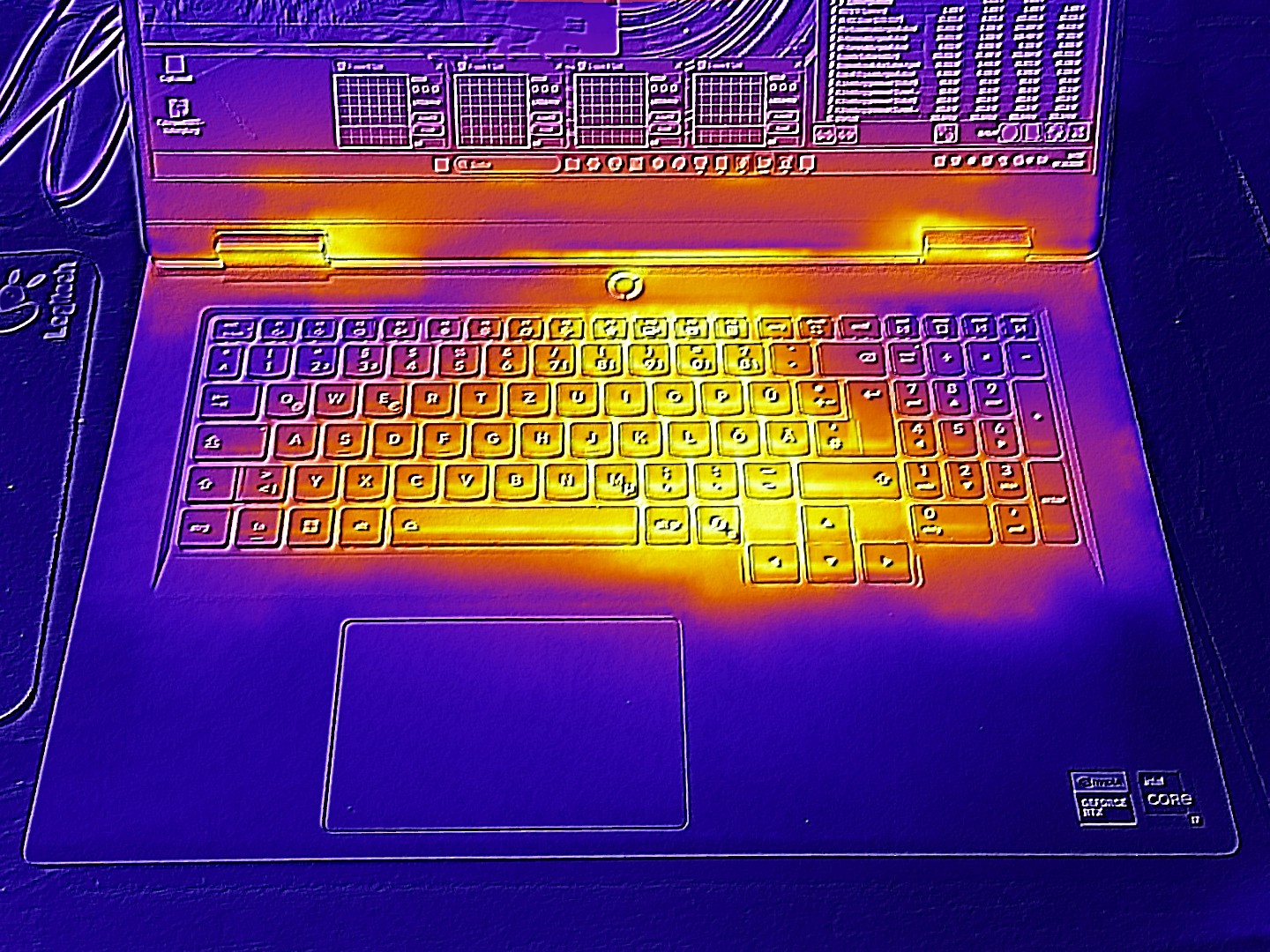 (+) Podpórki pod nadgarstki i touchpad są chłodniejsze niż temperatura skóry i maksymalnie 30 °C / 86 F i dlatego są chłodne w dotyku.