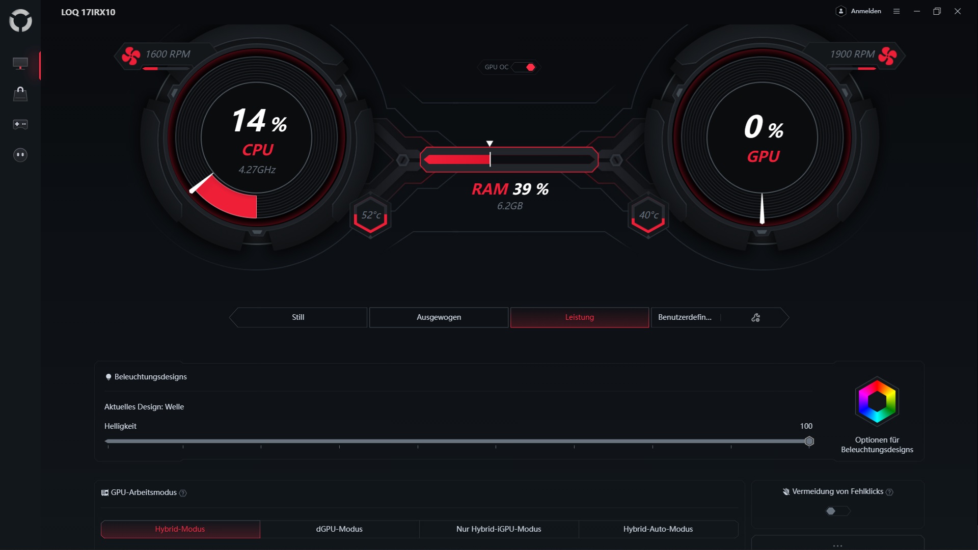 Tryb | Cichy | Zrównoważony | Wydajność + OC GPU |