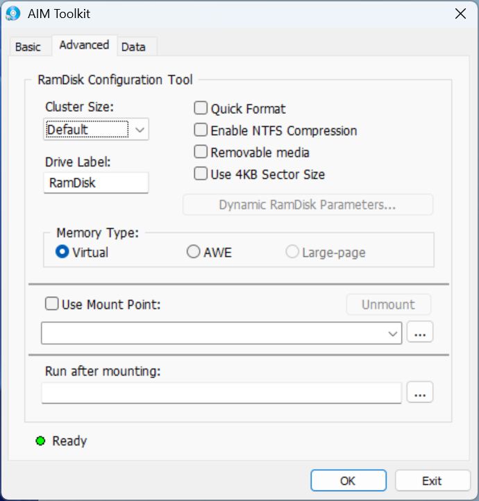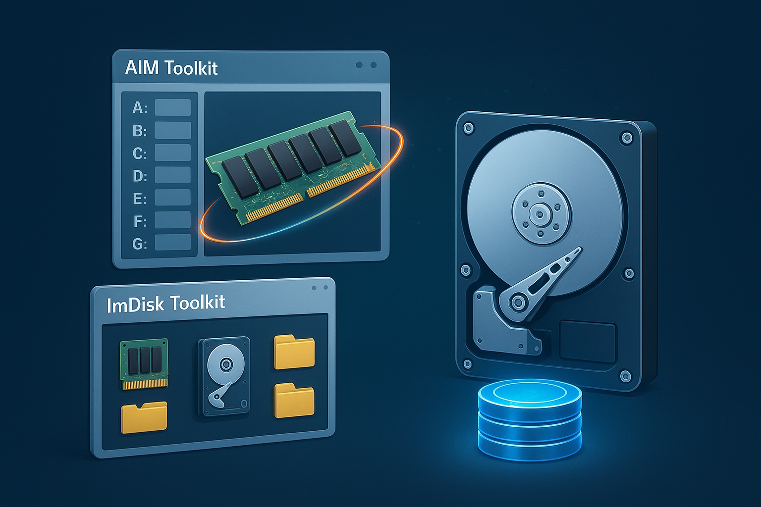 Do takiego testu potrzebny jest dysk, który jest stale szybszy niż jakikolwiek dysk SSD, który jest poddawany testom porównawczym. Eliminuje to wszelkie wąskie gardła po stronie źródłowej lub docelowej. I właśnie w tym miejscu pojawia się narzędzie open-source AIM Toolkit. Popularną alternatywą jest ImDisk. Oba narzędzia oferują te same dwie podstawowe funkcje: mogą tworzyć dyski wirtualne w pamięci RAM i mogą montować pliki obrazów jako dyski wirtualne.