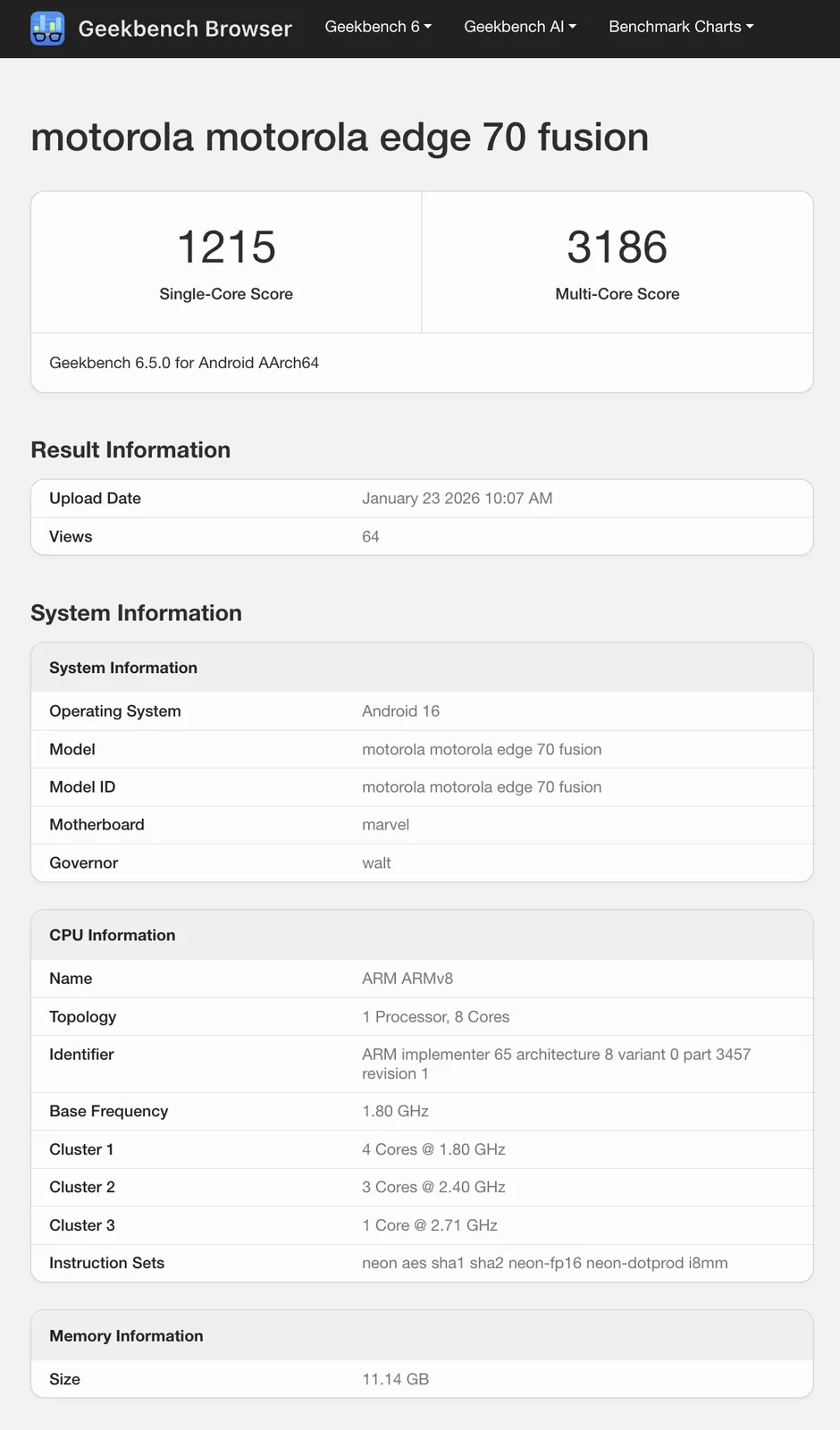 Teraz dwie listy Geekbench potwierdzają pomysł, że Motorola wkrótce zastąpi Edge 60 Fusion (obecnie 379 USD na Amazon) bezpośrednim następcą. Jednak oba zestawienia sugerują, że Motorola wyposażyła Edge 70 Fusion w nowszy chipset niż Snapdragon 7s Gen 3 wspomniany w ostatnim tweecie Blassa. W szczególności częstotliwość taktowania 2,71 GHz na klastrze chipsetu 3 identyfikuje chipset jako Snapdragon 7s Gen 4 a nie jego poprzednika.