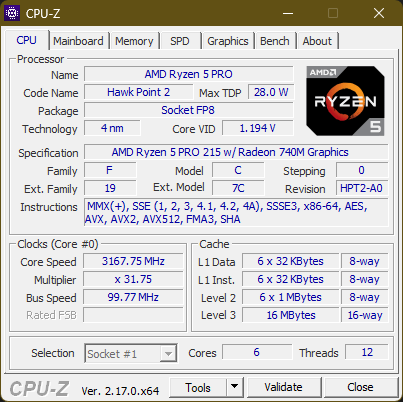 AMD Ryzen 5 Pro 215 to sześciordzeniowy procesor z 12 wątkami dzięki SMT. Ten układ Zen4 "Hawk Point" jest najsłabszym sześciordzeniowym procesorem w ofercie, z częstotliwością taktowania od 3,2 do 4,7 GHz . Co wyjątkowe, nie posiada on żadnej jednostki NPU. Dalsze porównania benchmarkowe są możliwe dzięki naszej Lista porównawcza procesorów.