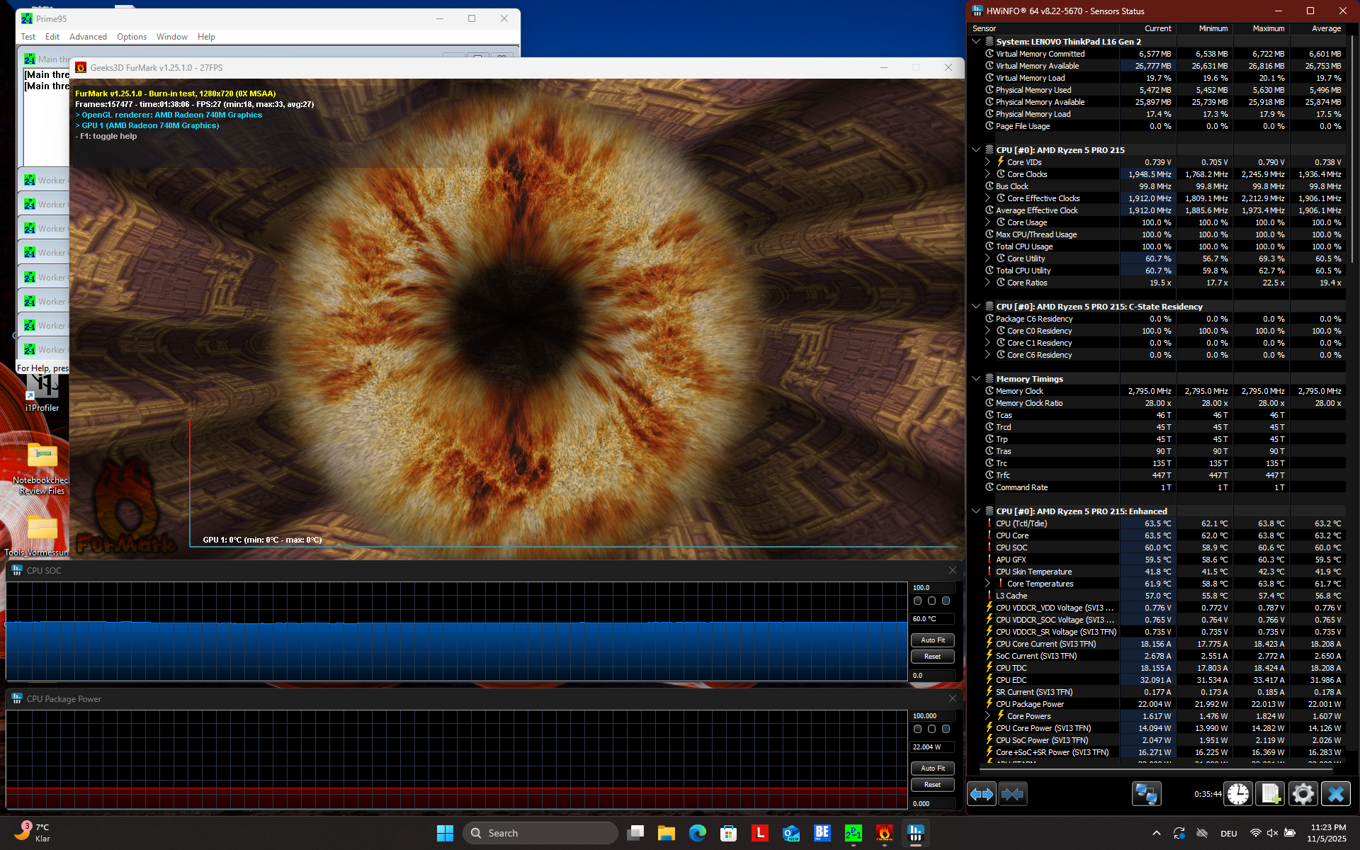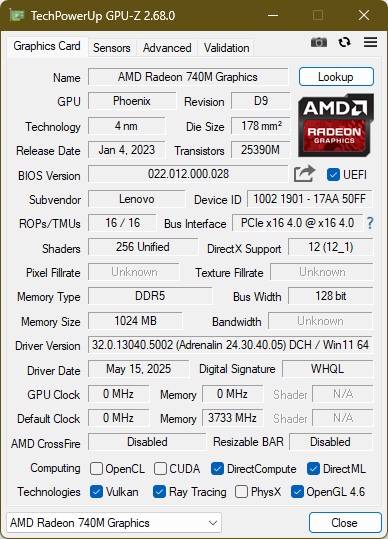 | Lenovo ThinkPad L16 Gen 2 21SC0029GE R5 PRO 215, Radeon 740M, Kioxia BG6 KBG6AZNV512G, LED IPS, 1920x1200, 16" | Lenovo ThinkPad L16 Gen 1 21L70010GE R7 PRO 7735U, Radeon 680M, SK Hynix HFS001TEJ9X164N, IPS, 1920x1200, 16" | HP EliteBook 8 G1a 16 AI Ryzen AI 7 PRO 350, Radeon 860M, Micron 3500 MTFDKBA512TGD, IPS, 1920x1200, 16" | Lenovo ThinkPad T16 Gen 4 21QQS06M00 Ryzen AI 7 PRO 350, Radeon 860M, SK hynix PC801 HFS001TEJ9X162N, IPS, 1920x1200, 16" | Lenovo ThinkBook 16 G7 QOY 21NH0005GE SD X Plus X1P-42-100, Adreno X1-45 1.7 TFLOPS, WD PC SN740 512GB SDDPMQD-512G-1101, IPS LED, 1920x1200, 16" | Przeciętny AMD Radeon 740M | Średnia w klasie Office | |