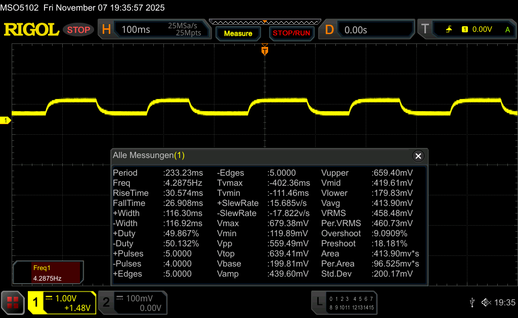 (±) | liniowość wysokich wartości jest średnia (8.9% delta do poprzedniej częstotliwości)
