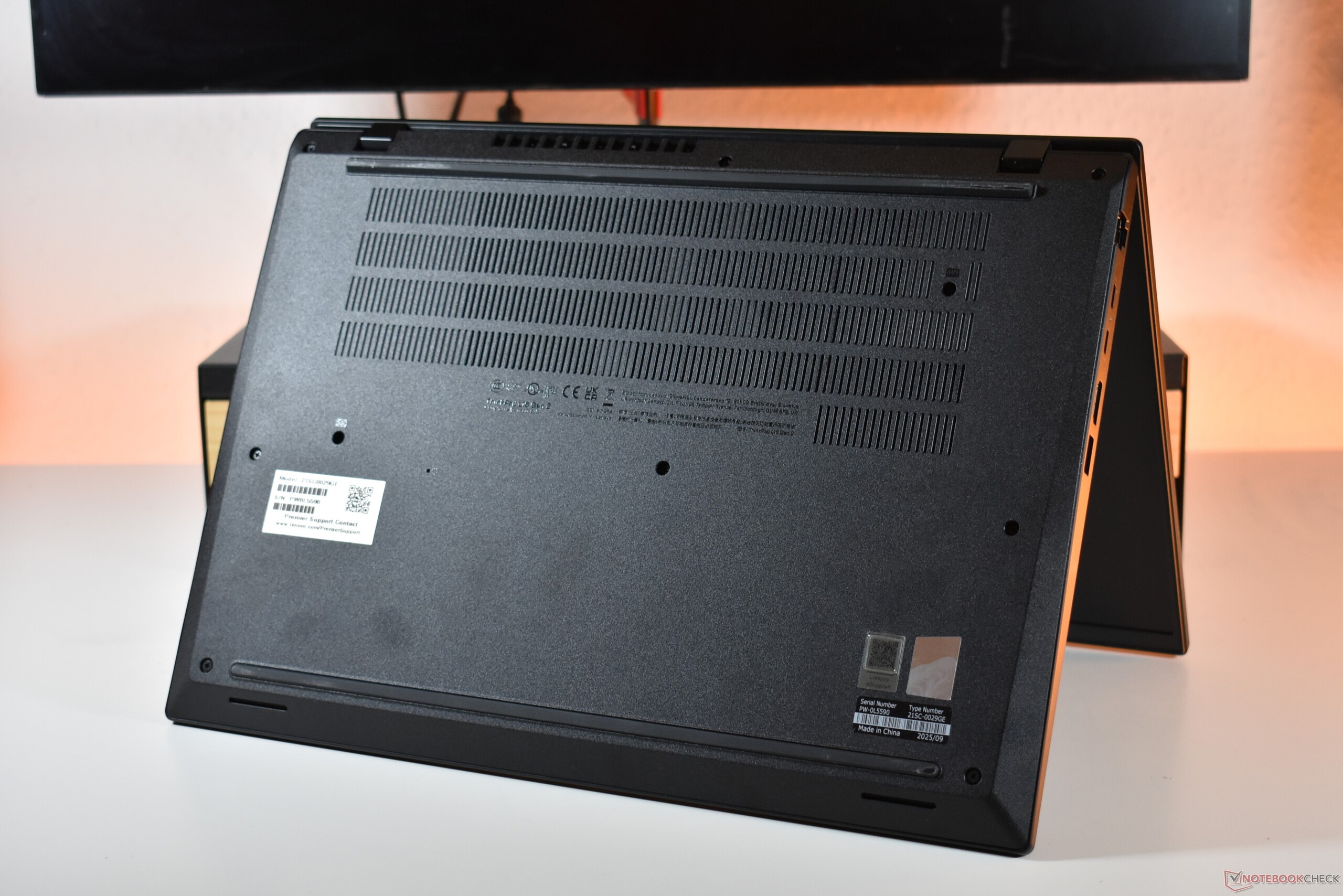 Laptop Lenovo ma typowy pudełkowaty czarny design ThinkPada dostosowany do niższego przedziału cenowego. W tym przypadku skutkuje to zastosowaniem grubszej plastikowej obudowy, która nadal jest solidna, ale tańsza w produkcji. Plastik zastosowany w Lenovo ThinkPad L16 Gen 2 AMD jest w większości gładki, z wyjątkiem chropowatej plastikowej ramki ekranu i dolnej pokrywy. Chociaż może to wydawać się nieco tanie, 16-calowy wariant serii L i tak ma pozostać na biurku. Zawiasy laptopa trzymają ekran głównie mocno i umożliwiają otwarcie o 180 stopni, ale nie jest możliwe podniesienie pokrywy tylko jedną ręką.