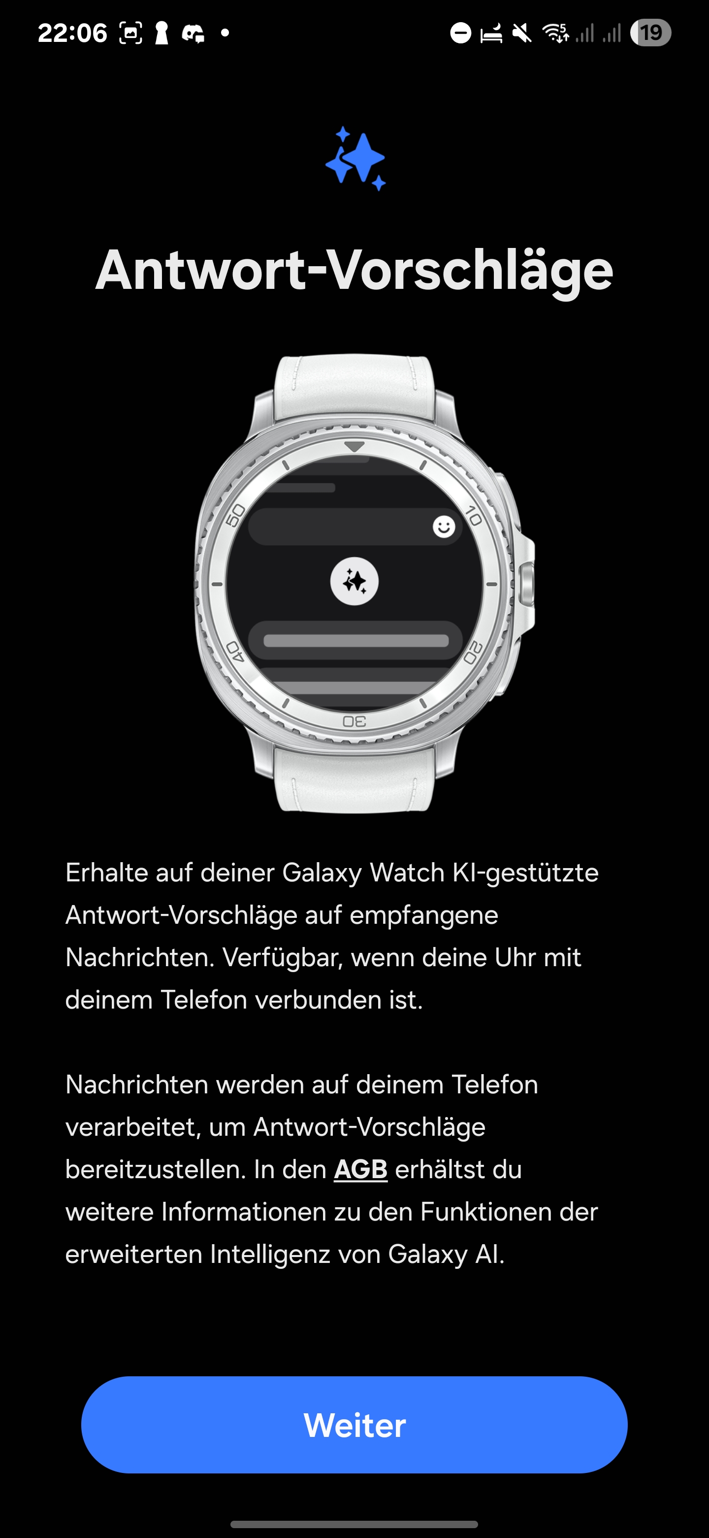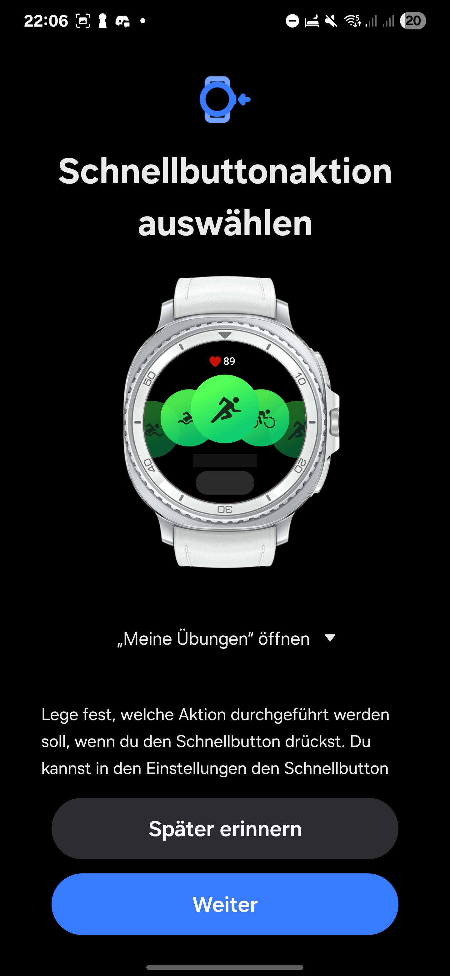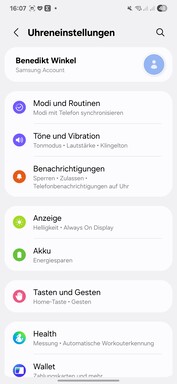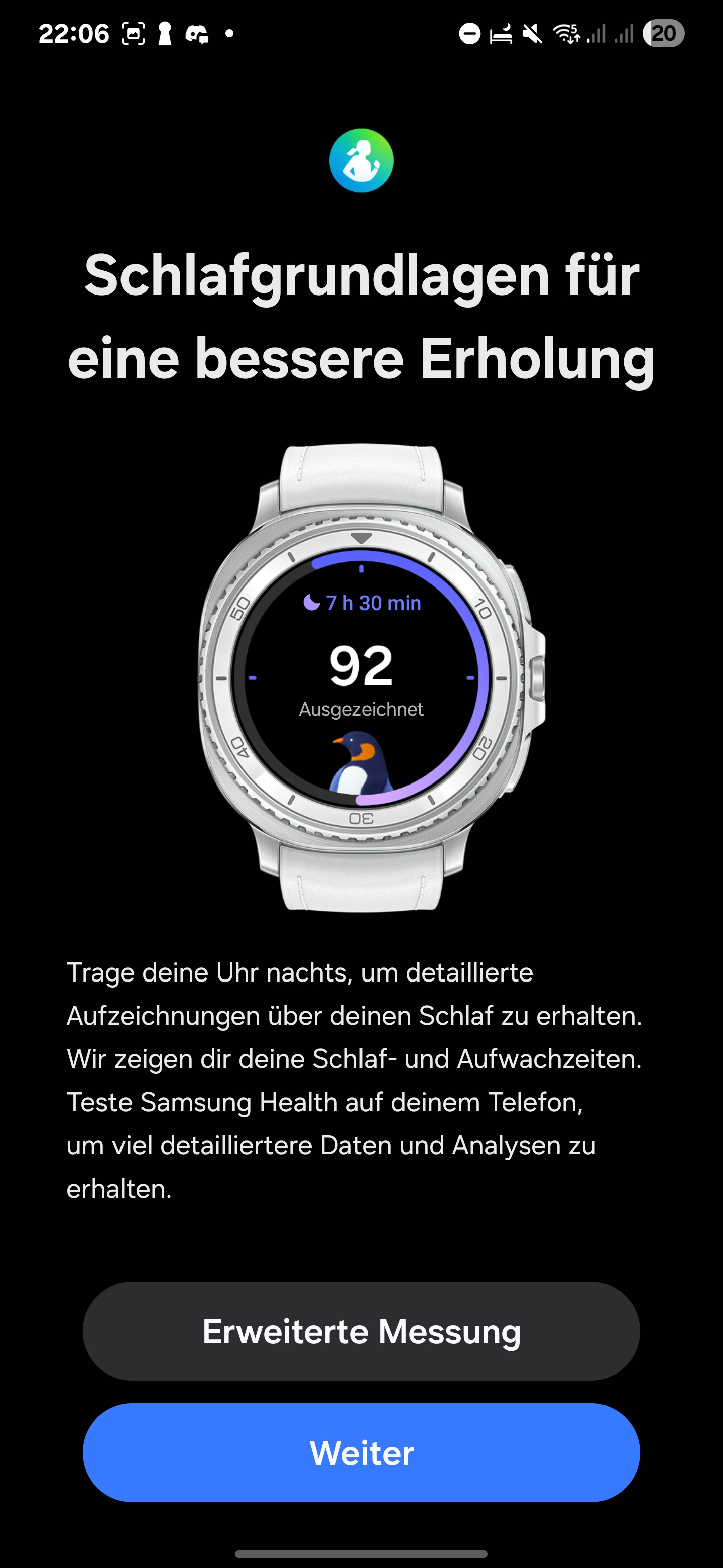 Podczas konfiguracji użytkownicy są pytani o orientację nadgarstka, funkcje zdrowotne i podstawowe preferencje. Po zakończeniu w aplikacji pojawia się przegląd, a krótki samouczek działa bezpośrednio na zegarku. Wszystkie dane fitness są zarządzane za pośrednictwem aplikacji Samsung Health.