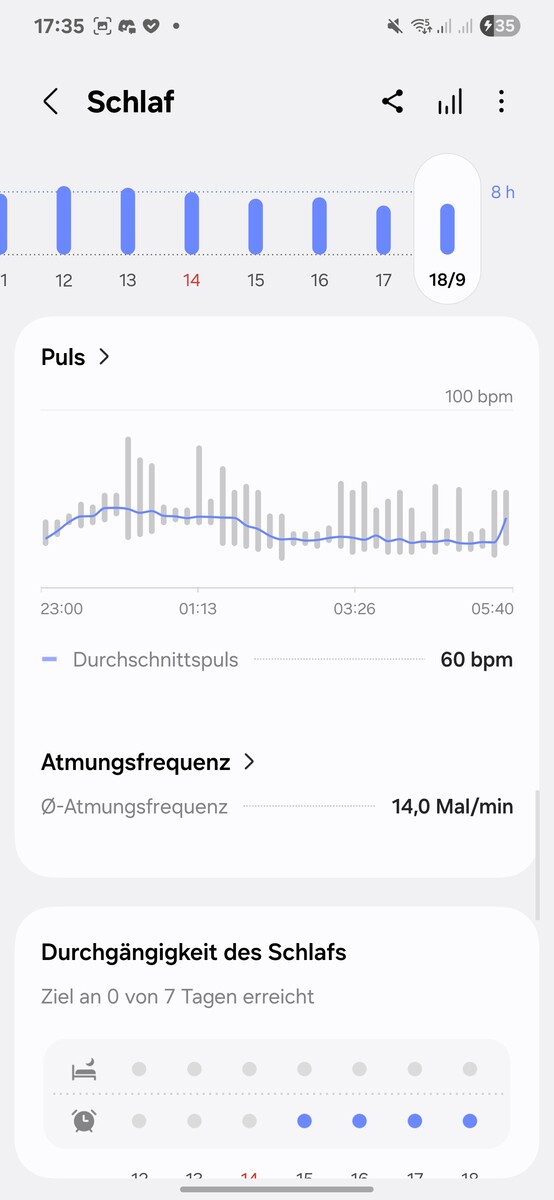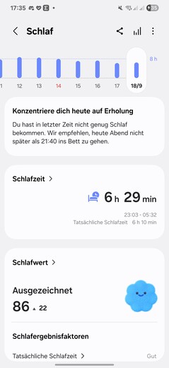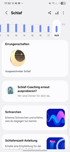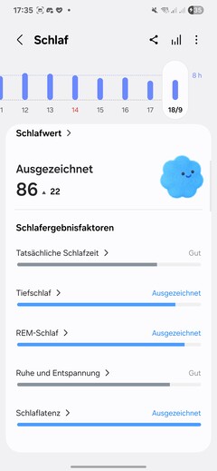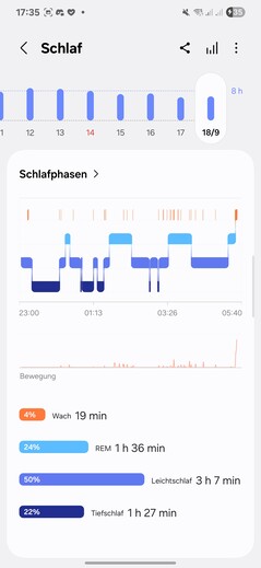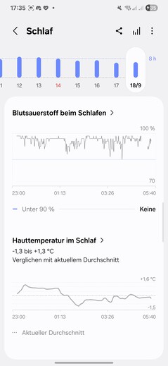 Samsung wykorzystuje system Sleep Score do śledzenia odpoczynku. Łączy on takie wskaźniki jak całkowity czas snu, fazy głębokie i REM, regenerację i opóźnienie, a także jest uzupełniony o spersonalizowane zalecenia i długoterminowe trendy. Zegarek rejestruje również tętno, temperaturę, nasycenie tlenem i częstość oddechów. Chrapanie i bezdech senny można wykryć po sparowaniu smartwatcha ze smartfonem.