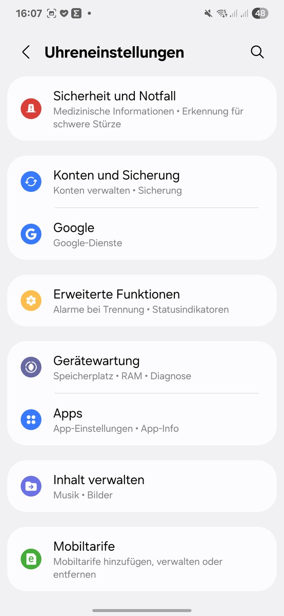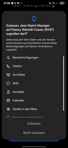 Po pierwszym włączeniu zegarek Galaxy Watch8 Classic jest automatycznie wykrywany przez smartfony Android. Konfiguracja odbywa się za pośrednictwem aplikacji Samsung Wear, która wymaga dodatkowej wtyczki do zegarka. Konto Google jest obowiązkowe, a podczas instalacji należy przyznać liczne uprawnienia.