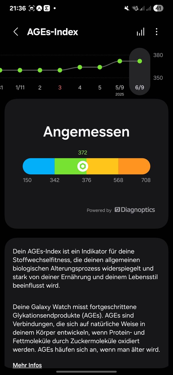 Nowością jest również wskaźnik AGEs służący do oceny sprawności metabolicznej. Wskaźnik ten obejmuje pomiary związane z przeciwutleniaczami, obciążeniem naczyniowym i składem ciała.