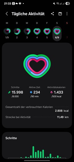 Ciśnienie krwi może być również mierzone za pomocą Galaxy Watch8 Classic, ale tylko po kalibracji z urządzeniem zewnętrznym. W tym przypadku użyliśmy Braun ExactFit 5 Connect jako urządzenia referencyjnego. Średnie odchylenie z trzech pomiarów wyniosło 0,29% dla wartości skurczowej i 3,65% dla wartości rozkurczowej, z maksymalnym odchyleniem 3 mmHg w jednym teście.