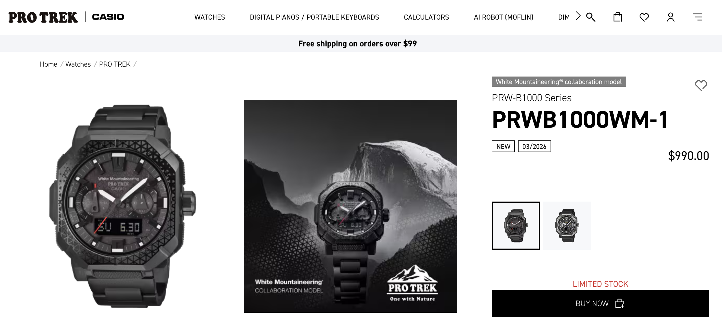 Casio's niedawno ogłoszony Pro Trek we współpracy z White Mountaineering jest teraz dostępny do kupienia w USA, z listami pokazującymi ograniczone zapasy dla PRW-B1000WM-1. Model ten został wprowadzony na rynek na początku tego roku, a strony detaliczne potwierdzają teraz ceny na poziomie 990 USD.