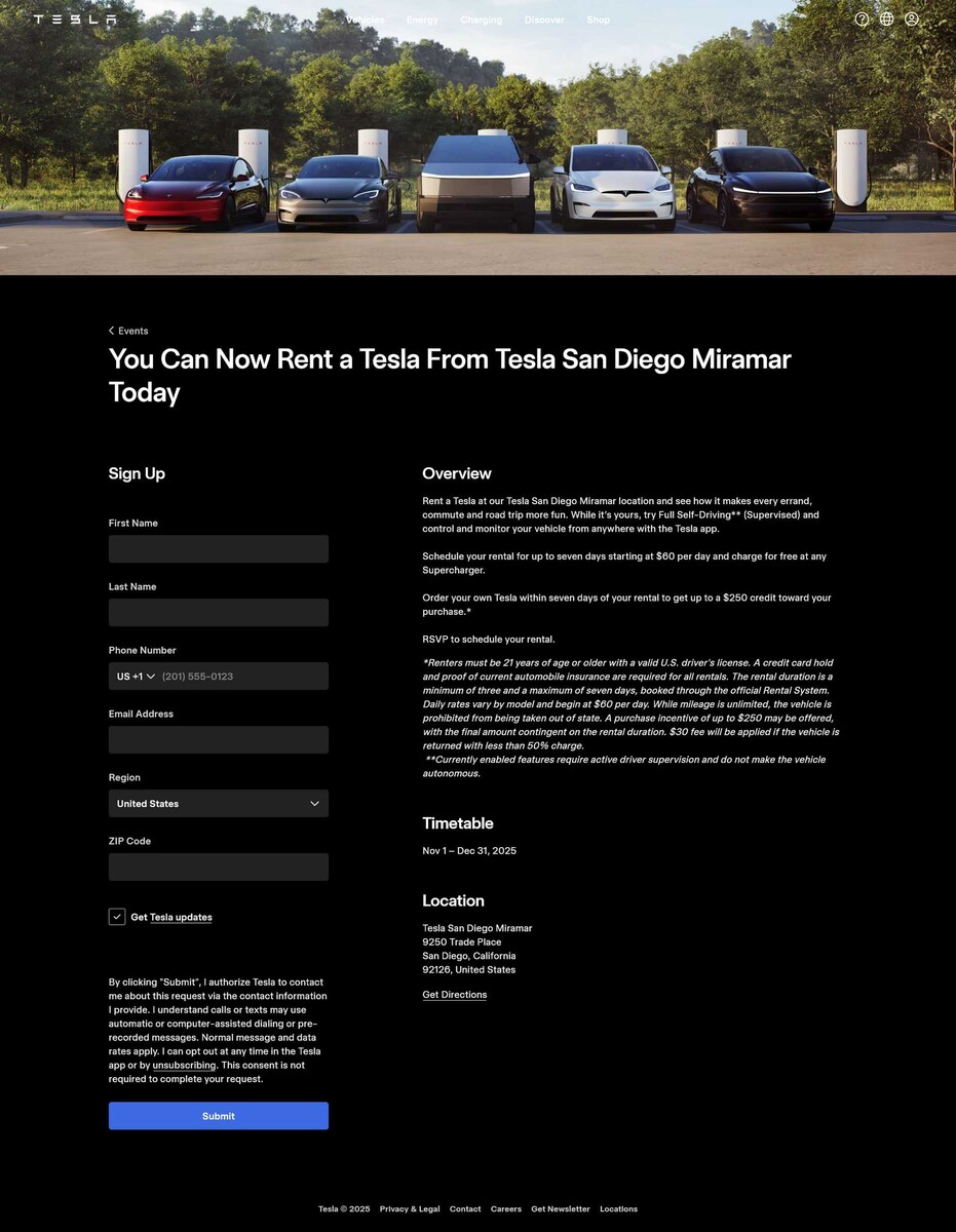 Tesla zamierza przyciągnąć nowych klientów w USA dzięki nowo uruchomionemu programowi wynajmu przy jednoczesnym zmniejszeniu zapasów. Uruchomienie próbne rozpocznie się w wybranych sklepach Tesli, takich jak w San Diego, i początkowo będzie ograniczone do okresu od 1 listopada do 31 grudnia 2025 roku. Wygląda na to, że Tesla próbuje zwiększyć sprzedaż przed końcem roku. To, czy promocja zostanie rozszerzona na inne rynki, pozostaje niejasne.