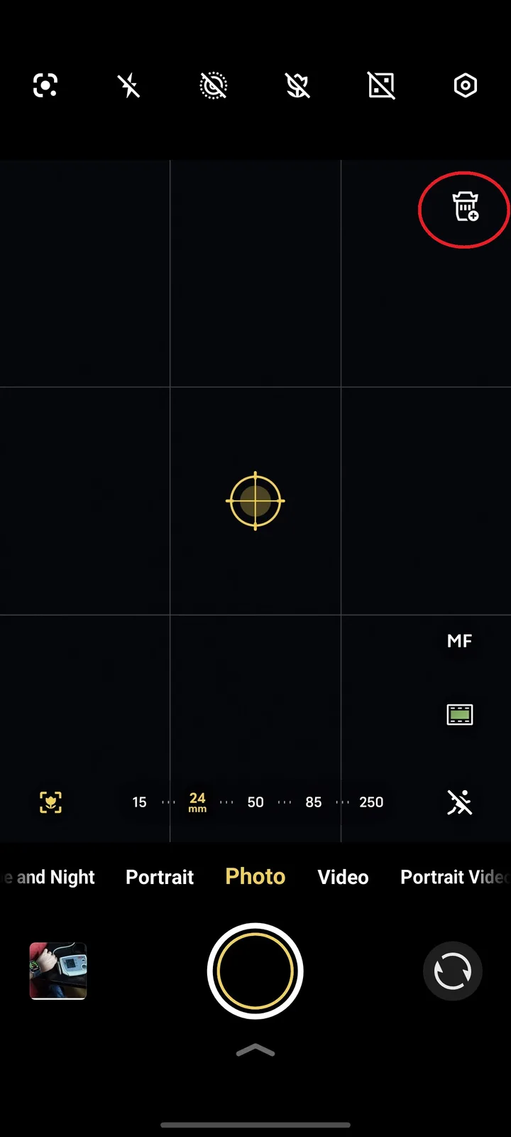Po aktywacji w ustawieniach, symbol telekonwertera jest dostępny w prawie wszystkich trybach, aby szybko przełączyć się na ten tryb. Kolejne dotknięcie ikony obiektywu ponownie aktywuje standardowe ogniskowe.
