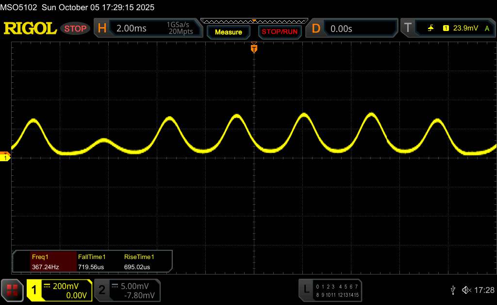 (+) | wzloty są liniowe (5.9% delta do poprzedniej częstotliwości)