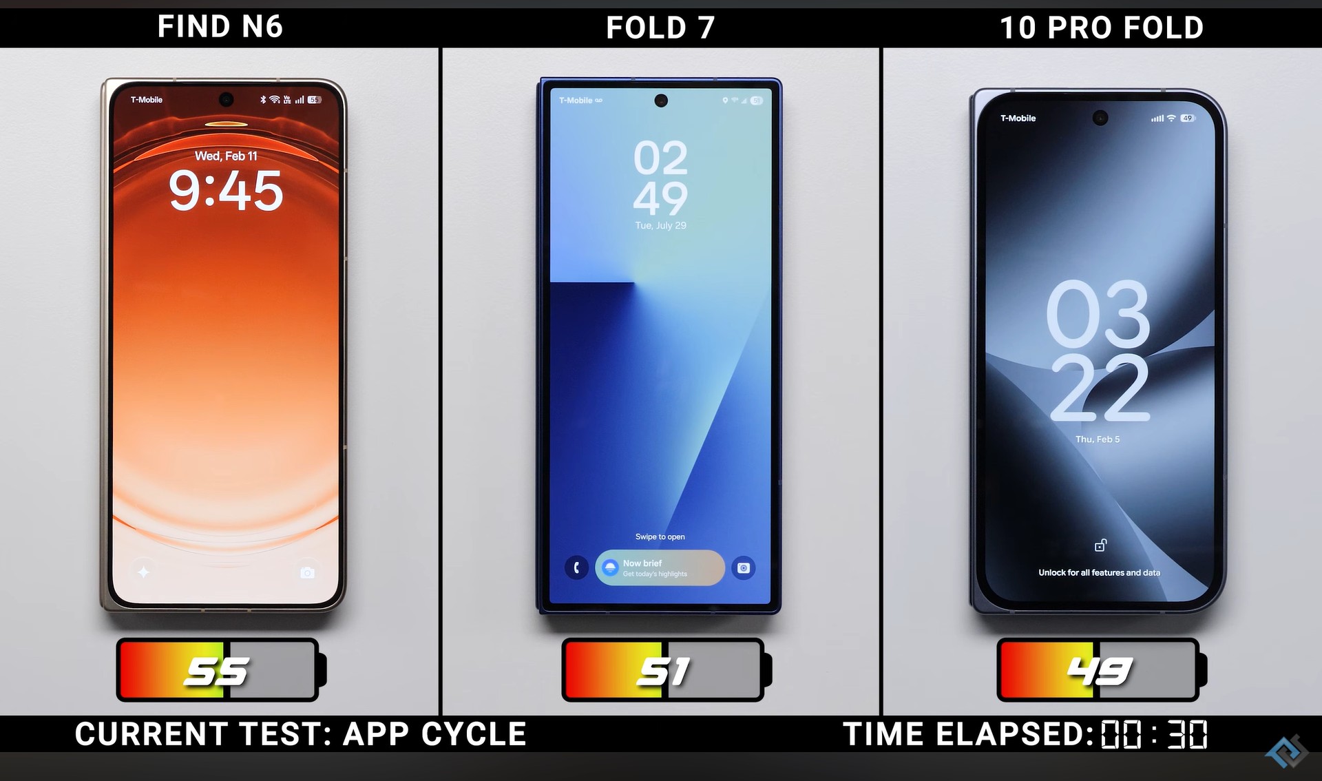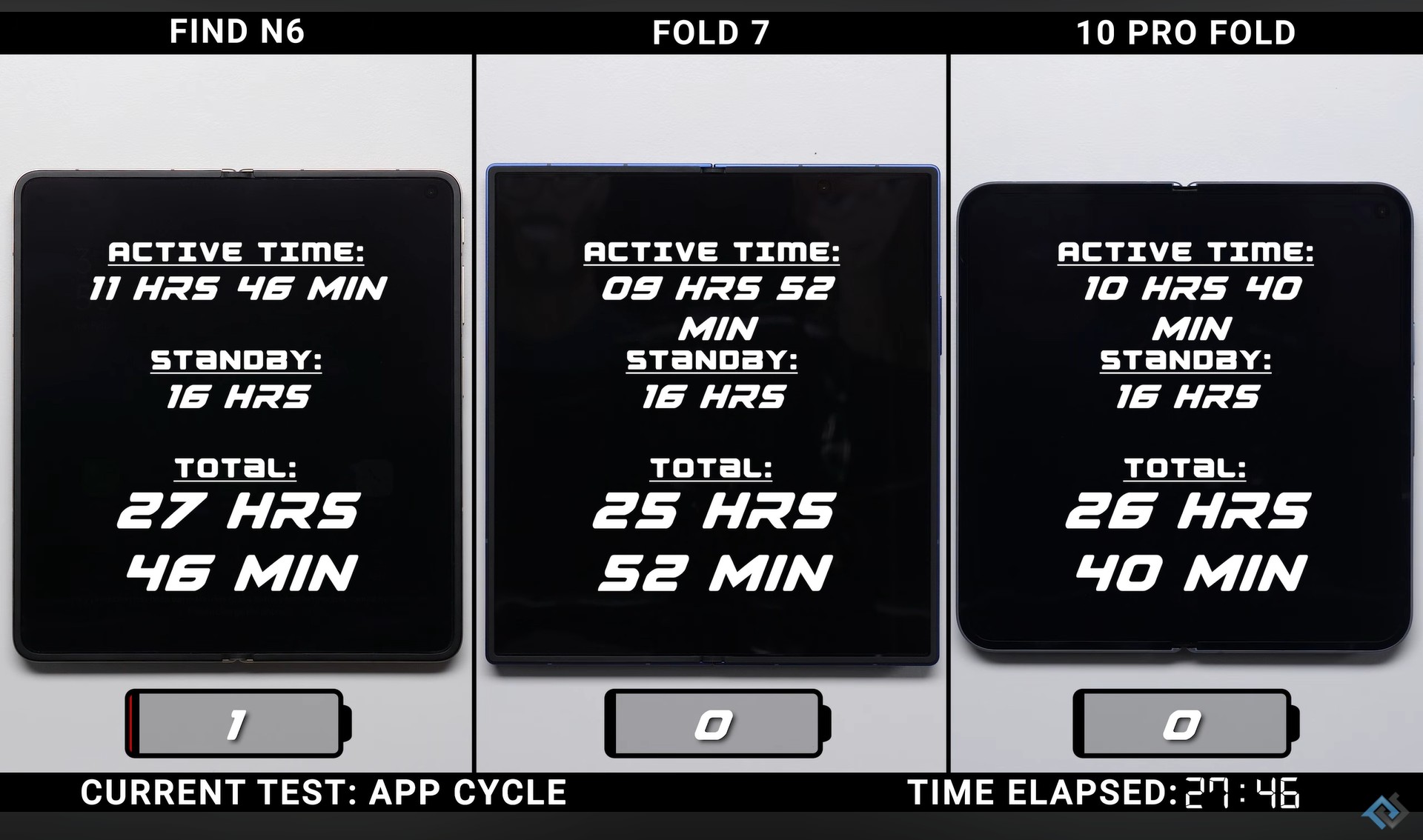 Oznacza to, że Oppo Find N6 działał nieco ponad godzinę dłużej niż Galaxy Z Fold 7 i około dwie godziny dłużej niż Google Pixel 10 Pro Fold. Żywotność baterii Google Pixel 10 Pro Fold jest rozczarowująca, biorąc pod uwagę jego baterię o pojemności 5000 mAh.