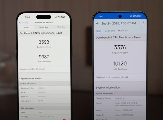 Geekbench opowiada podobną historię. Podczas gdy przed wprowadzeniem na rynek serii Xiaomi 17 urządzenia przekroczyły 3,700 i 11,000 znaków w testach jednordzeniowych i wielordzeniowych, wyniki praktyczne opowiadają inną historię. Dla porównania, urządzenie Ben's Gadget Reviews uzyskało wyniki 3,376 i 10,120, Sahil Karoul 3,328 i 10,210, a Mrwhosetheboss 3,407 i 10,416. Liczby te są solidne, ale nie znacznie lepsze niż urządzenie takie jak Oppo Find X8 Ultraktóre w naszych testach uzyskało wyniki 3 145 i 9 722 punktów. Z drugiej strony, są one znacznie gorsze niż Snapdragon 8 Elite Gen 5 QRD (3,832 i 12,459).
