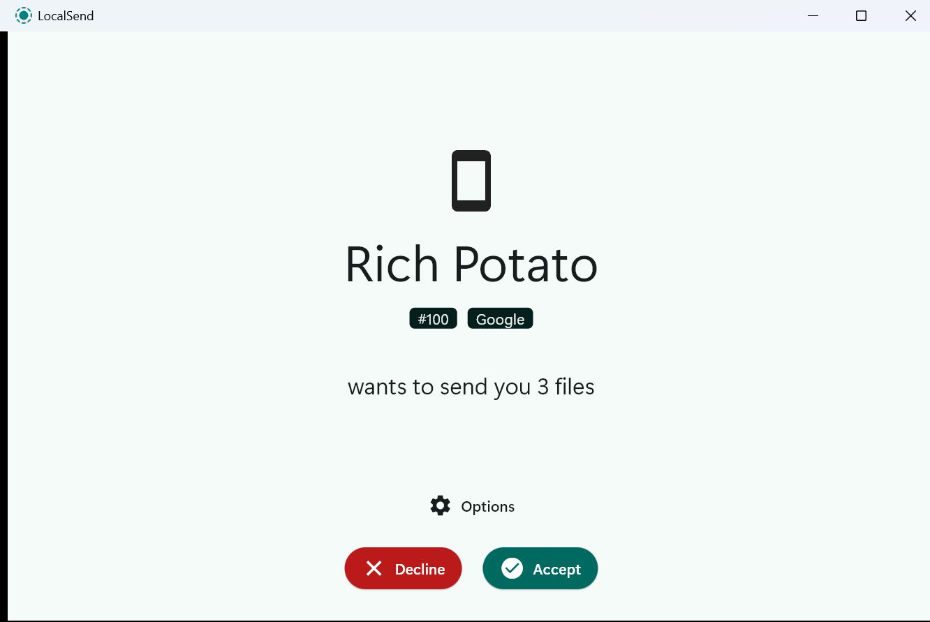 Szukałem więc dalej i w końcu trafiłem na inne narzędzie open source: LocalSend (Website). W przeciwieństwie do Pairdrop, nie mogę go obsługiwać z poziomu przeglądarki, ale jego strona Githuboferuje aplikację na praktycznie każdą platformę - Windows, macOS, Linux, Android i iOS. Zamiast instalować wersję Android ze Sklepu Play, pobrałem ją z F-Droid, co wydaje mi się bardziej przyjazne dla prywatności.