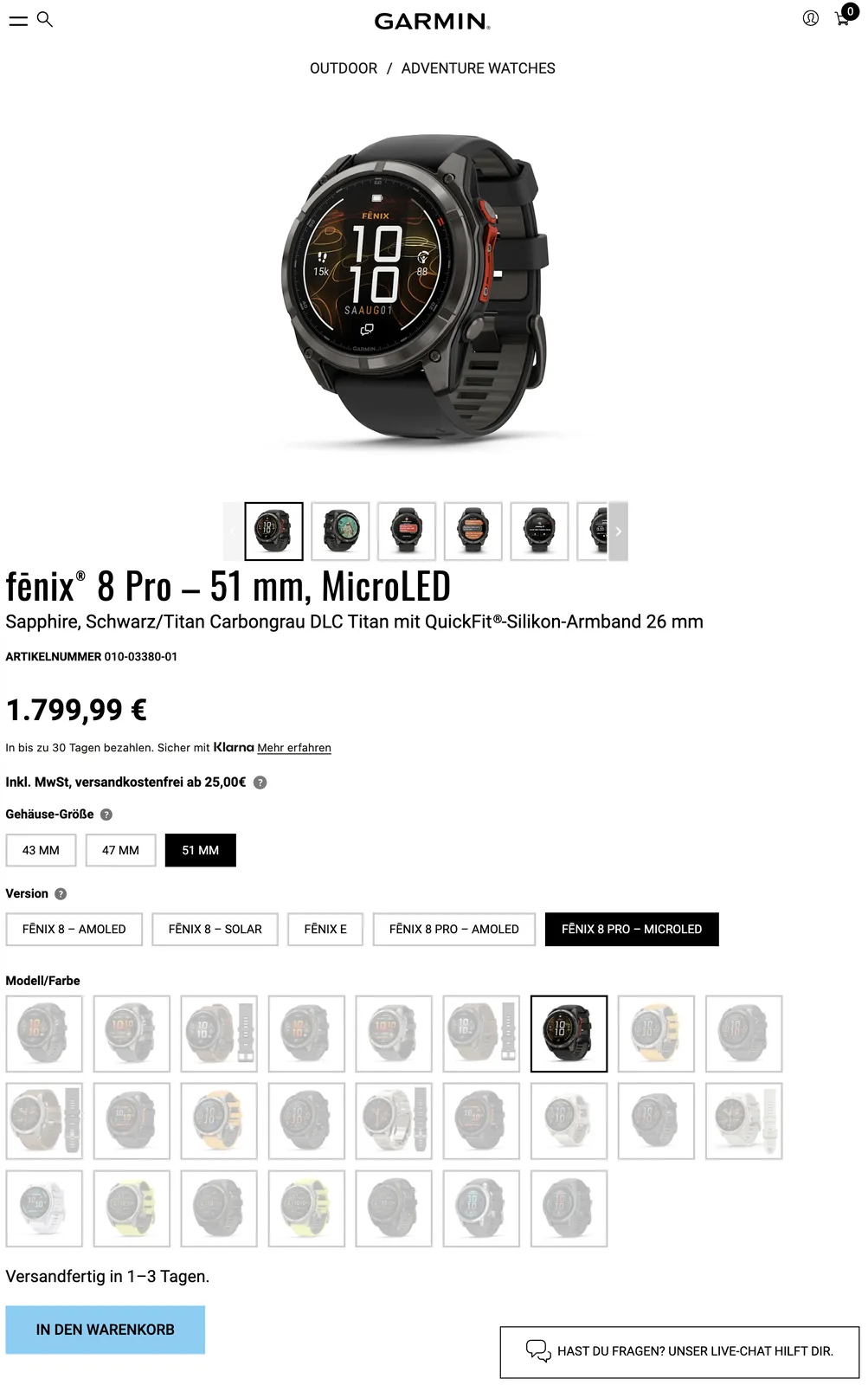 Tymczasem w Wielkiej Brytanii istnieje obecnie różnica 300 funtów między wariantami Fenix 8 Pro, a wariant MicroLED spadł do 1 499,99 funtów. Wydaje się, że te zmiany cen są również trwałe, biorąc pod uwagę, że Garmin nie wspomina o tym, że jest to cena sprzedaży. Proszę pamiętać, że Garmin oferuje Fenix 8 Pro MicroLED tylko jako smartwatch 51 mm. Więcej szczegółów na temat Fenix 8 Pro i jego opcjonalnego wyświetlacza o jasności 4500 nitów znajdą Państwo w naszym artykule premierowym.