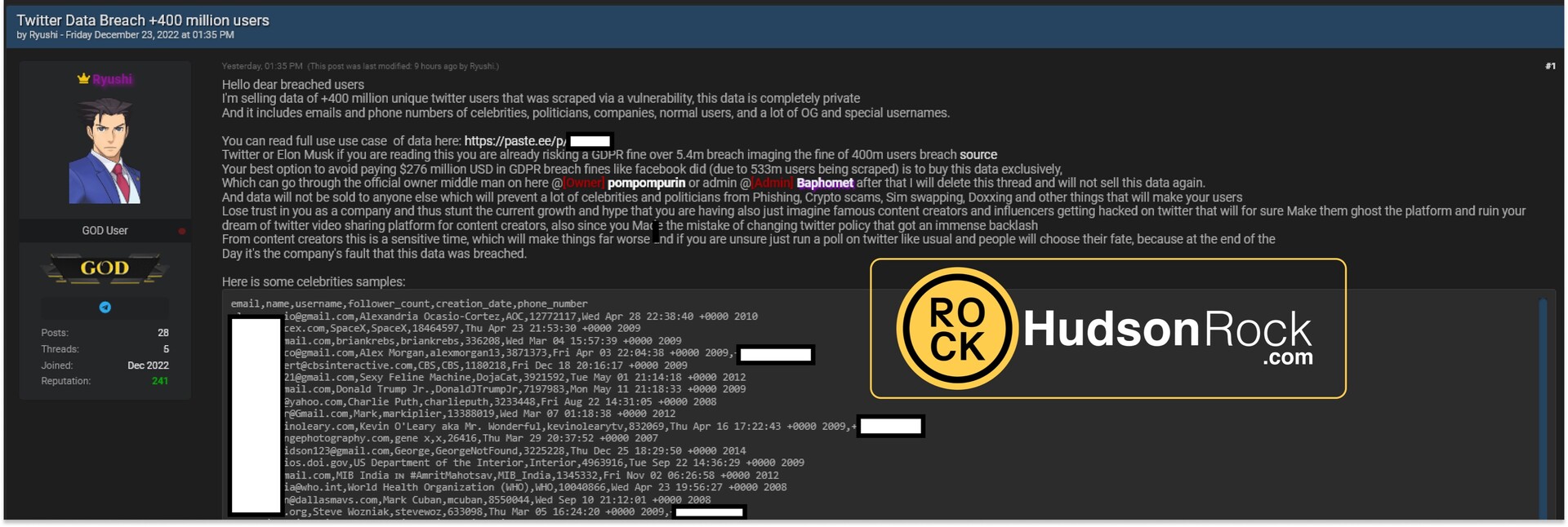 Według "cyberprzestępczości firmy wywiadowczej" Hudson Rock, Twitter stał się przedmiotem nowego wycieku danych, który umieścił pokaźne repozytorium danych użytkowników w rękach "aktora zagrożenia". Incydent ten najwyraźniej miał miejsce wcześniej, w 2022 roku, chociaż naruszenie, o którym mowa, dopiero teraz zostało upublicznione.