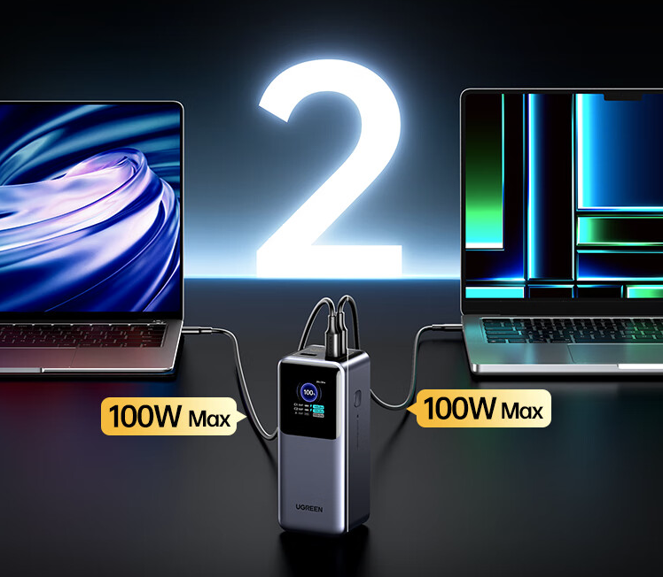 Energy Pai Pro posiada trzy porty, w tym 140W PD 3.0 USB-C. Według UGREEN pozwoliłoby to na naładowanie MacBooka Pro 16 do 56% w 30 minut. Jest też drugi port USB-C o maksymalnej mocy wyjściowej 100 W i wyjście USB-C oferujące 22,5 W. Dzięki technologii SmartCharge firmy UGREEN, power bank może zapewnić moc wyjściową 200 W dla dwóch portów. Przy mocy 100 W, vivo X100 Pro może zostać w pełni naładowany w 32 minuty. Gdy wszystkie trzy porty są używane, pierwszy port USB-C zapewnia 140 W, a pozostałe dwa wyjścia są ograniczone do 20 W każdy. Power bank może w pełni naładować się z mocą 65 W przez USB-C w ciągu dwóch godzin i oczekuje się, że zachowa ponad 80% pojemności po 1000 cyklach.