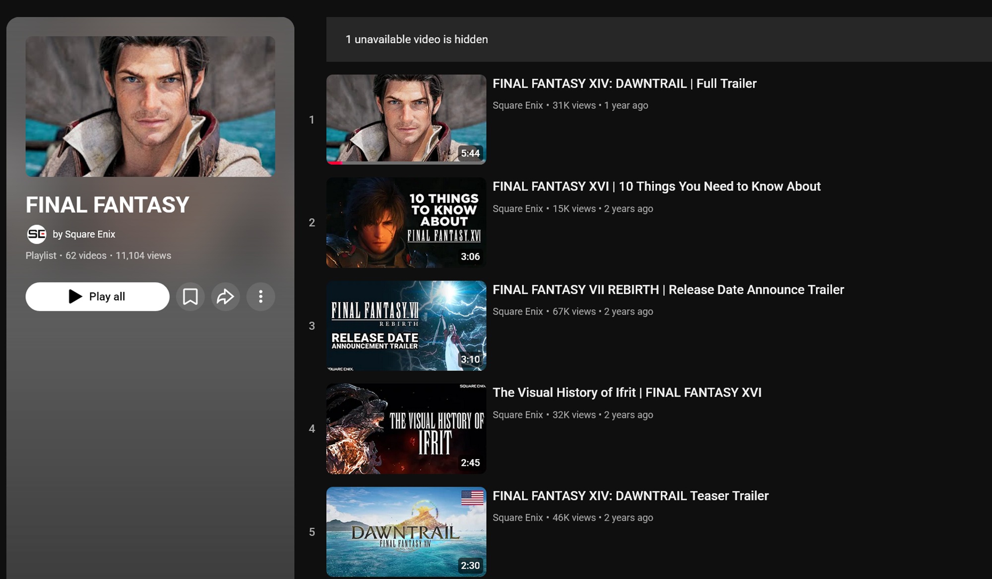 Lista odtwarzania YouTube prezentuje zwiastuny promujące główne dodatki do popularnej serii RPG. Ostatnim nowym wyborem był film promujący rozszerzenie Final Fantasy 14: Dawntrail, opublikowany w 2024 roku. Wydawcy często przygotowują treści z wyprzedzeniem, ale nie publikują ich do czasu ujawnienia. To powiedziawszy, gracze widzieli podobne prywatne wpisy od Rockstar, które nie zaowocowały nowym Zwiastun GTA 6 .